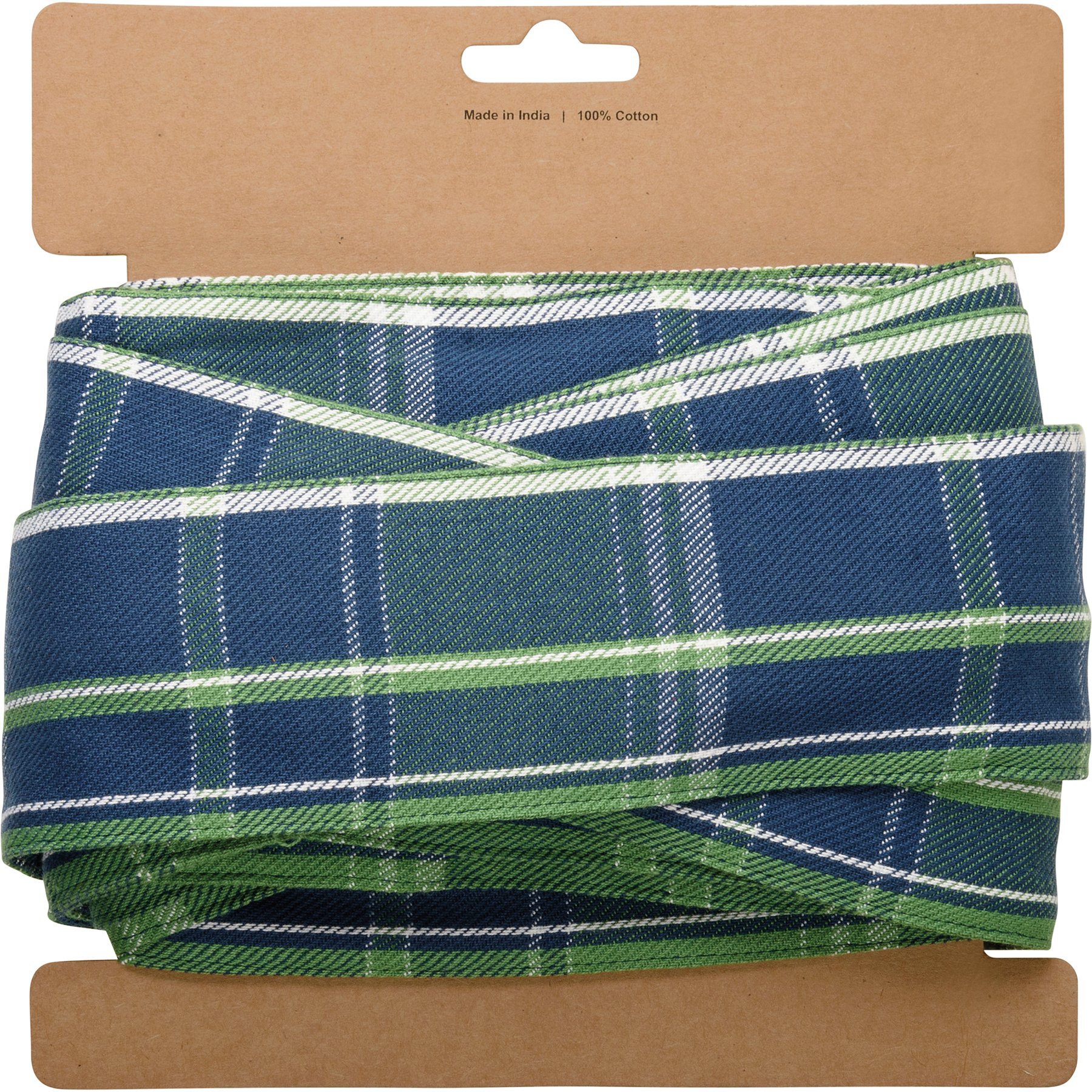 A cotton ribbon featuring an all-over holiday plaid pattern. Comes wrapped around a cardboard hanger to easily display on rack. Ribbon includes wire for added structure. 10 yards x 3".