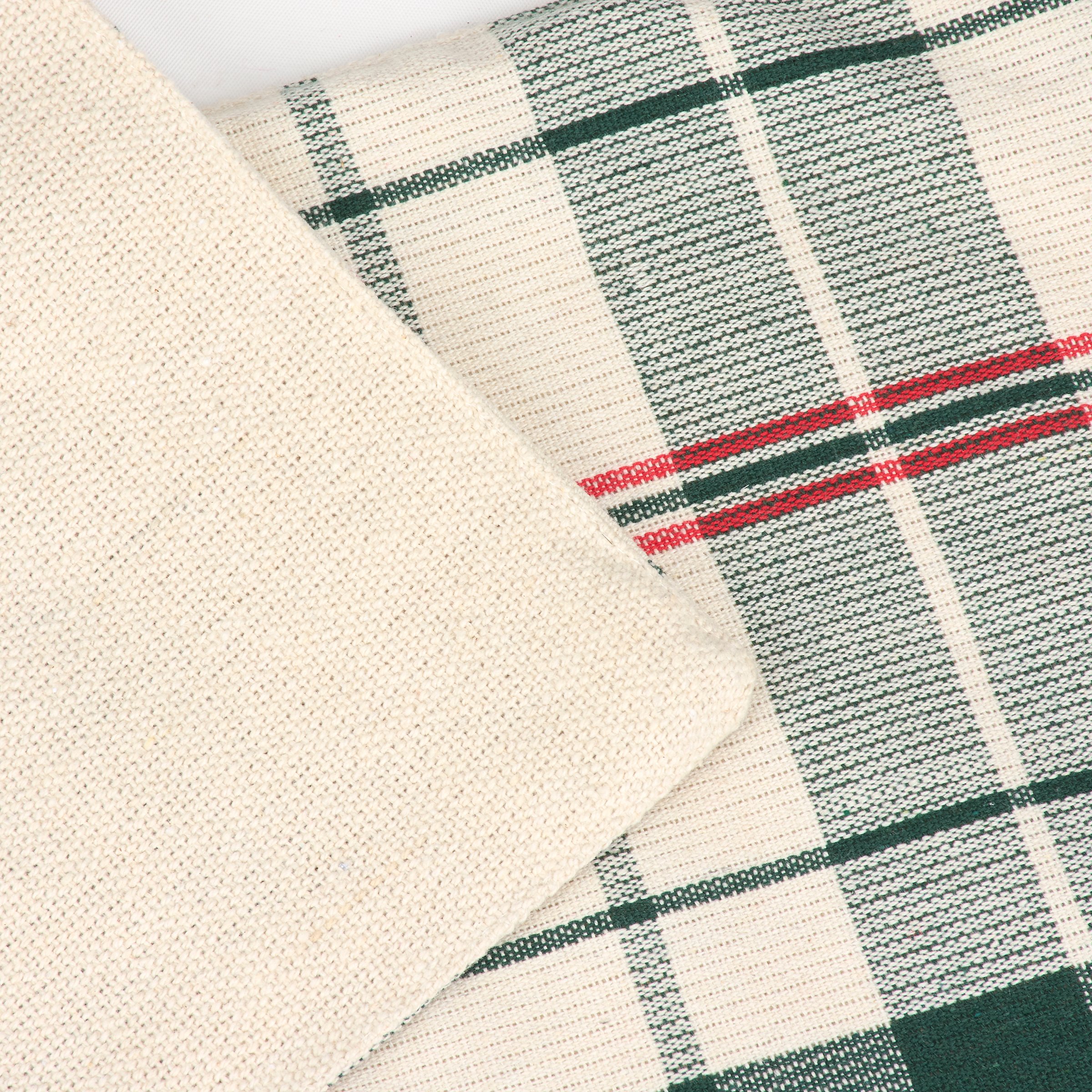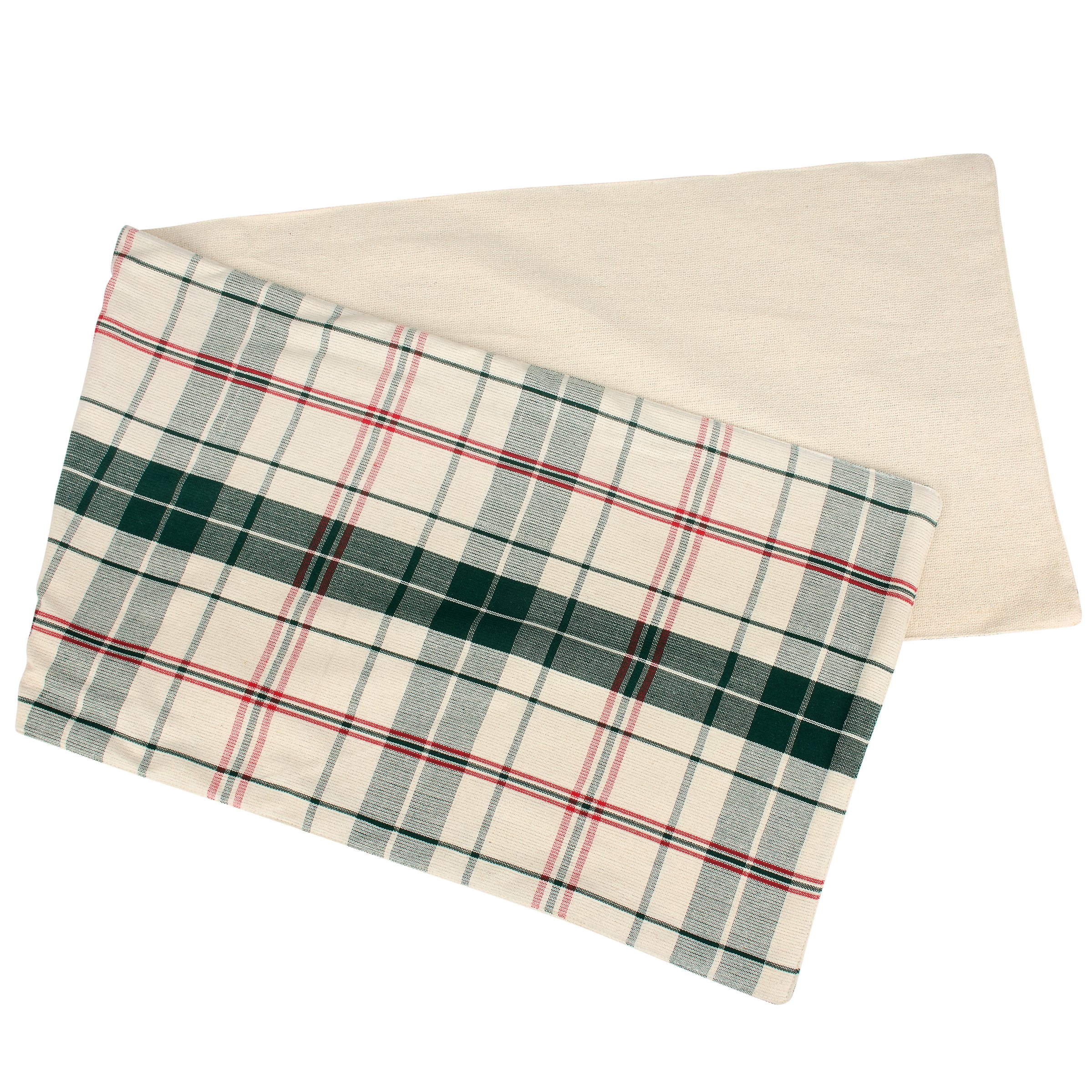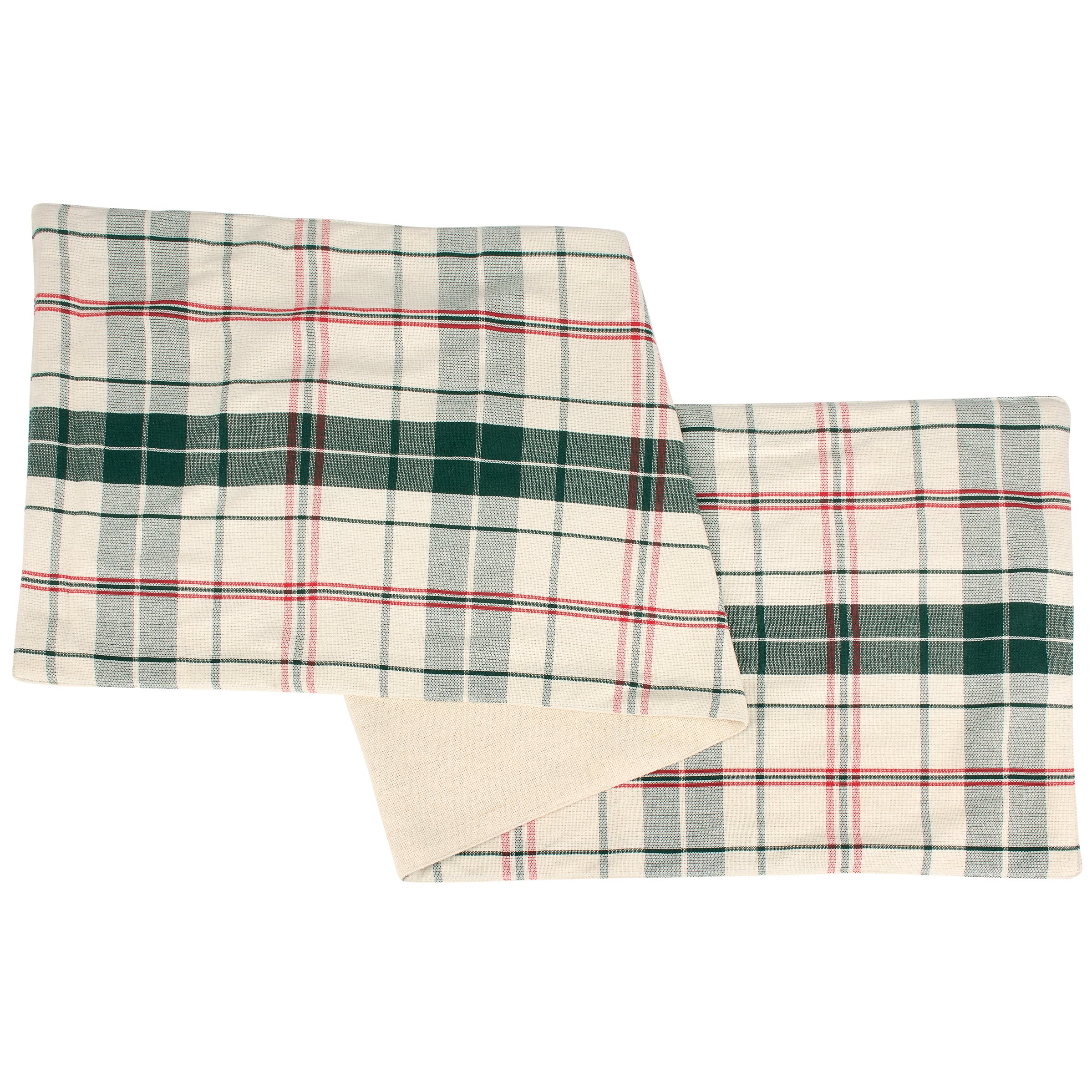 A cotton table runner from our Christmas Collection displaying a rustic red and green plaid that coordinates well with Christmas home decor and tablescapes. Christmas plaid runner can be used as table décor or as an accent to a seasonal home décor display. Our Christmas Plaid table runner is conveniently machine washable for easy cleaning. Seasonal runner features 56 inches of length for plenty of coverage. A rustic Christmas home accent with a variety of seasonal display options.