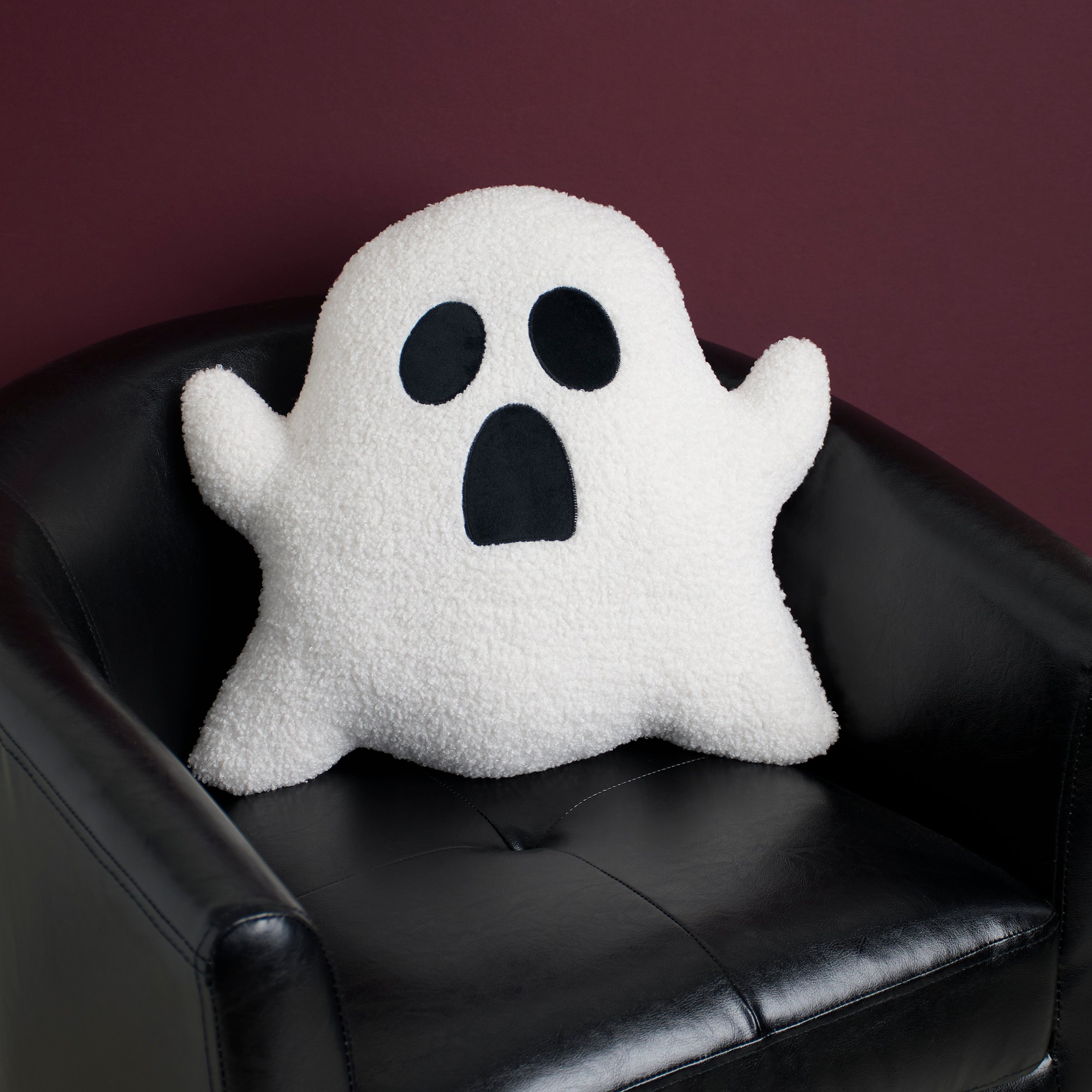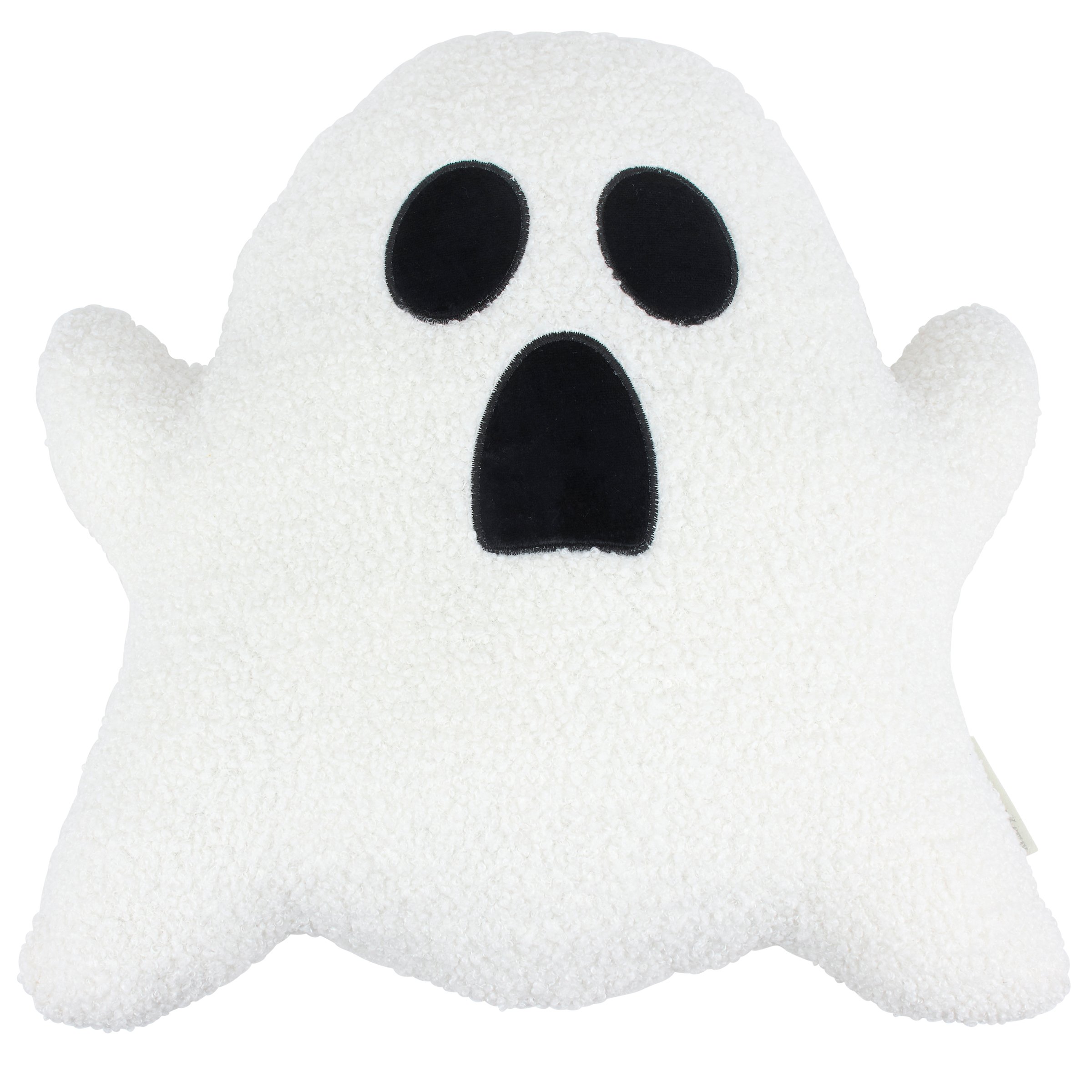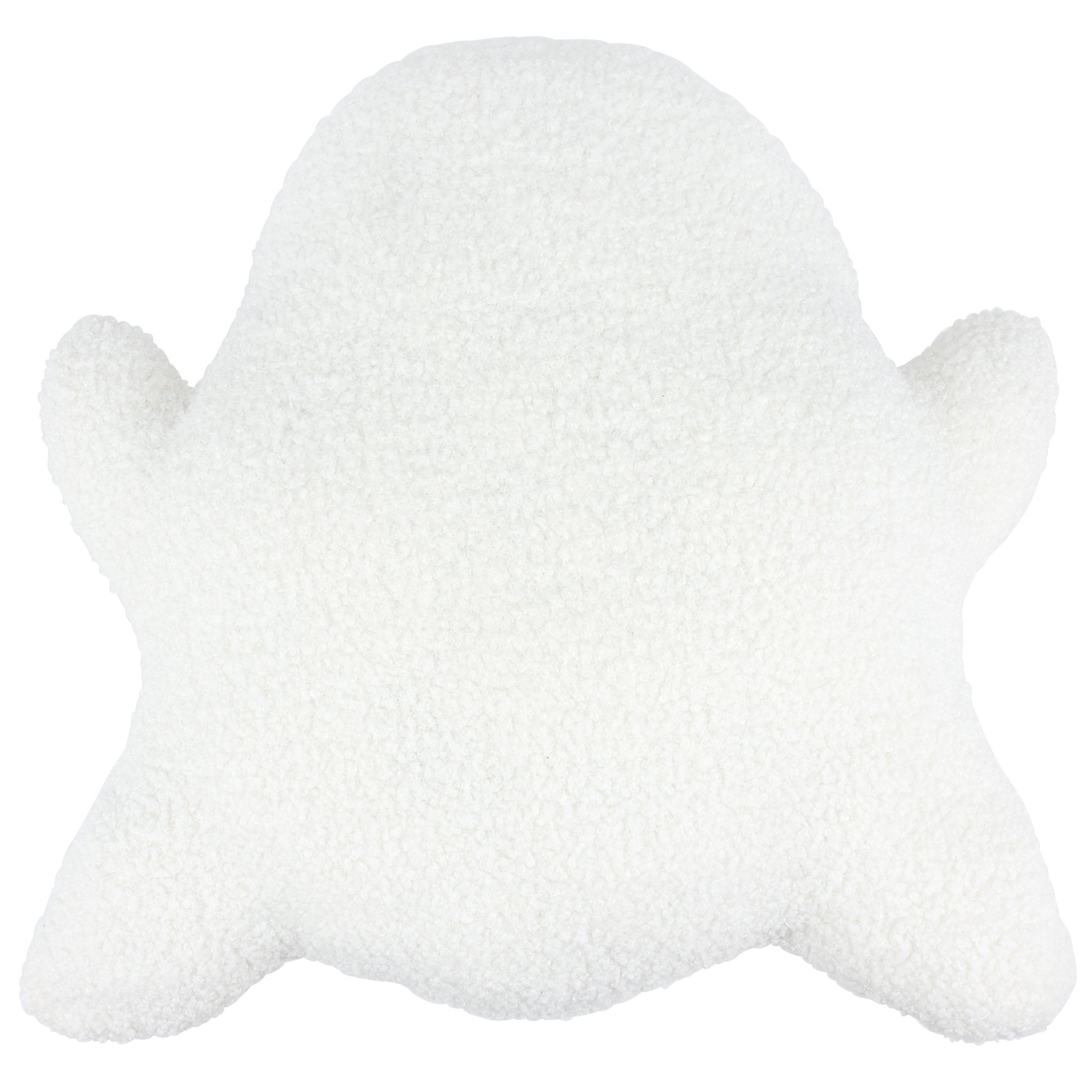 A decorative pillow from our Halloween Collection in the shape of a cute ghost character. Our Ghost shaped pillow features a plush texture for a fuzzy feel with embroidered face details. This Halloween shaped pillow contains polyester filling and is for decorative use only; not a toy. A fun Halloween home accent perfect for adding seasonal style to any space.