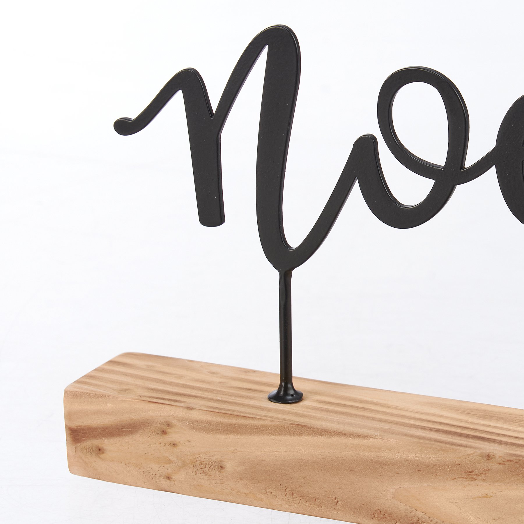 A decorative sitter from our Christmas Collection displaying a metal "Noel" sentiment in a hand illustrated style attached to a natural wood base. Our Noel sitter is designed to free-stand on any flat surface. A fun seasonal home accent with a variety of display options.