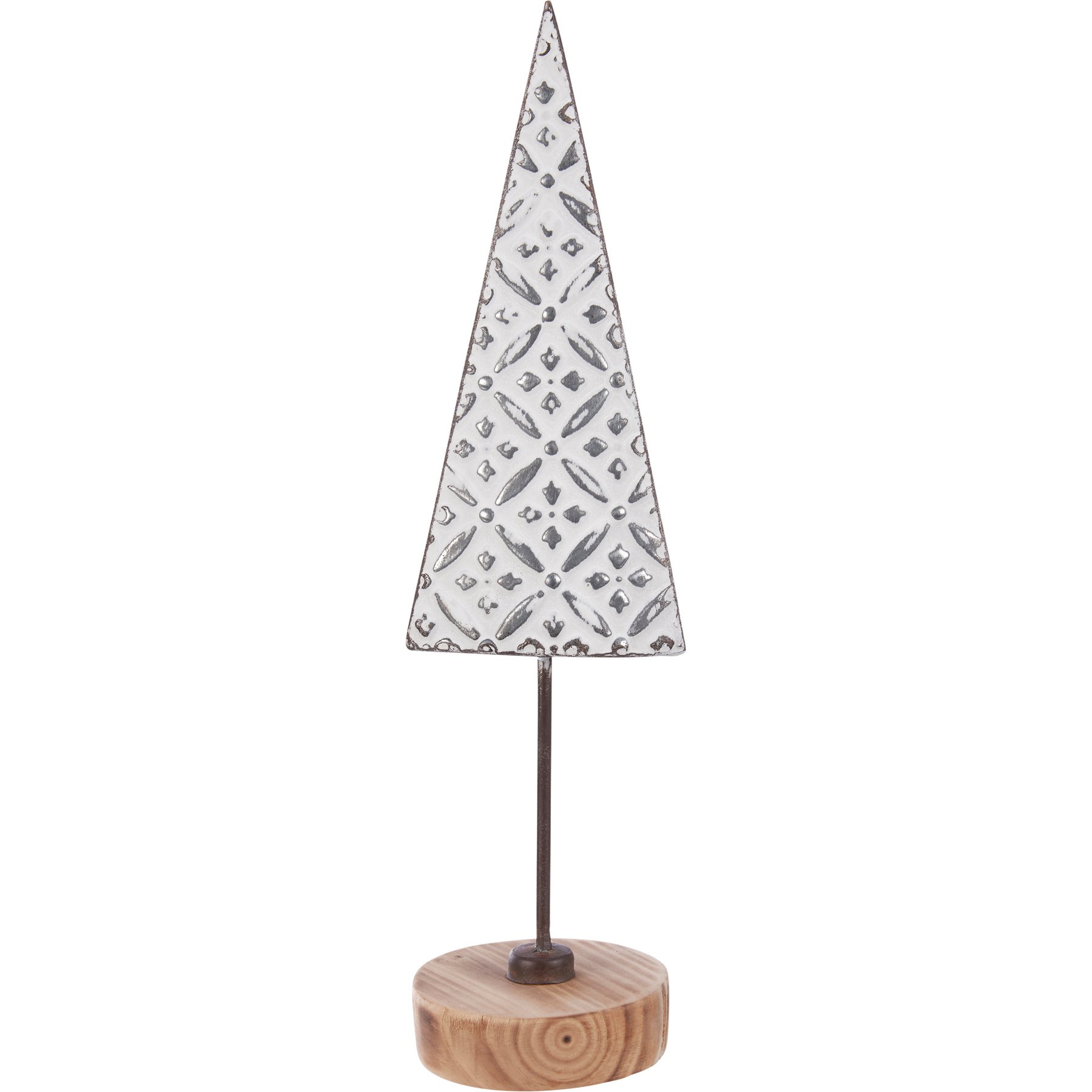 A small metal and wood sitter from our Christmas Collection displaying a textured Christmas tree. The square tile tree sitter features wood base and embossed dark metal with a brush of white to accent square tile pattern. Free-stands alone on flat surface.