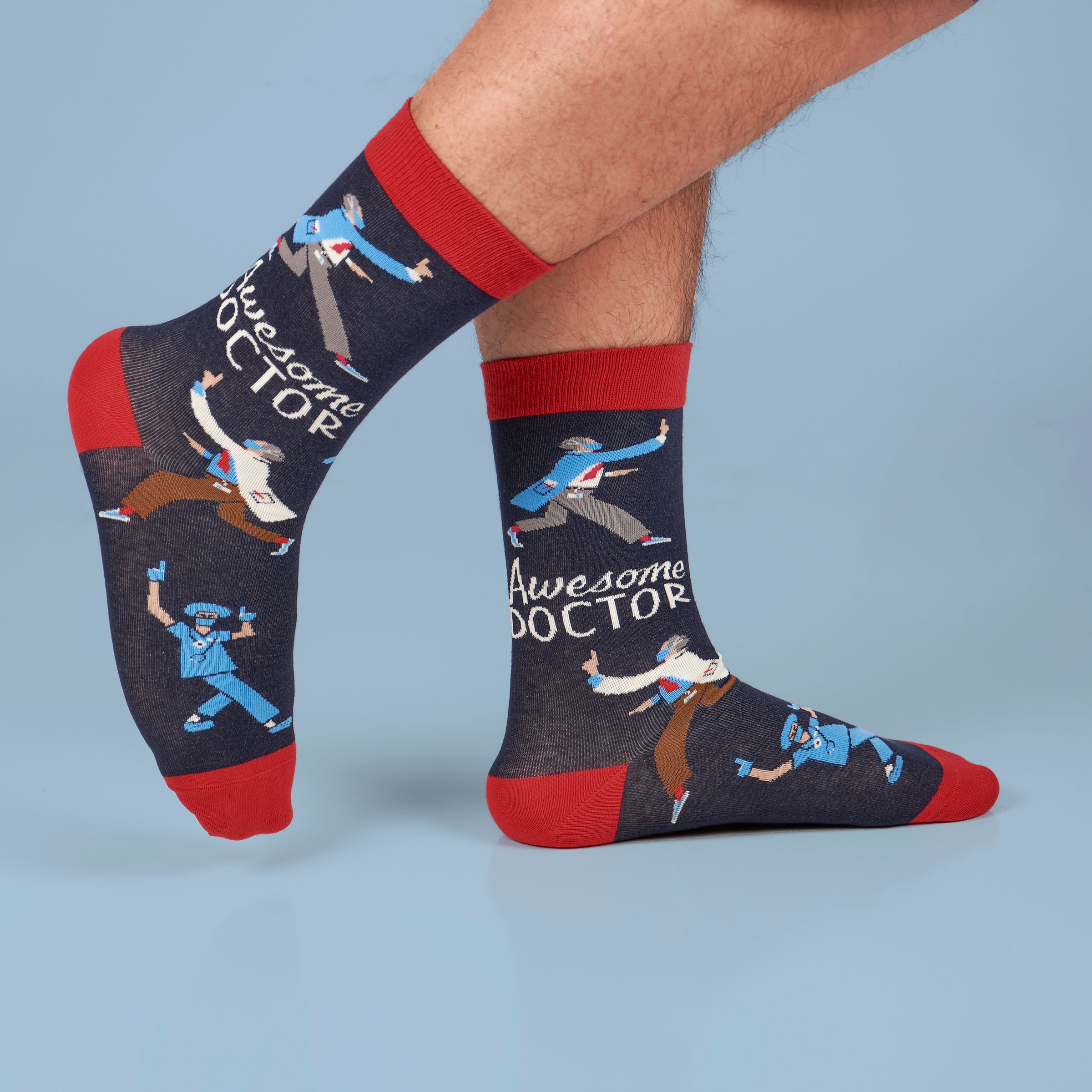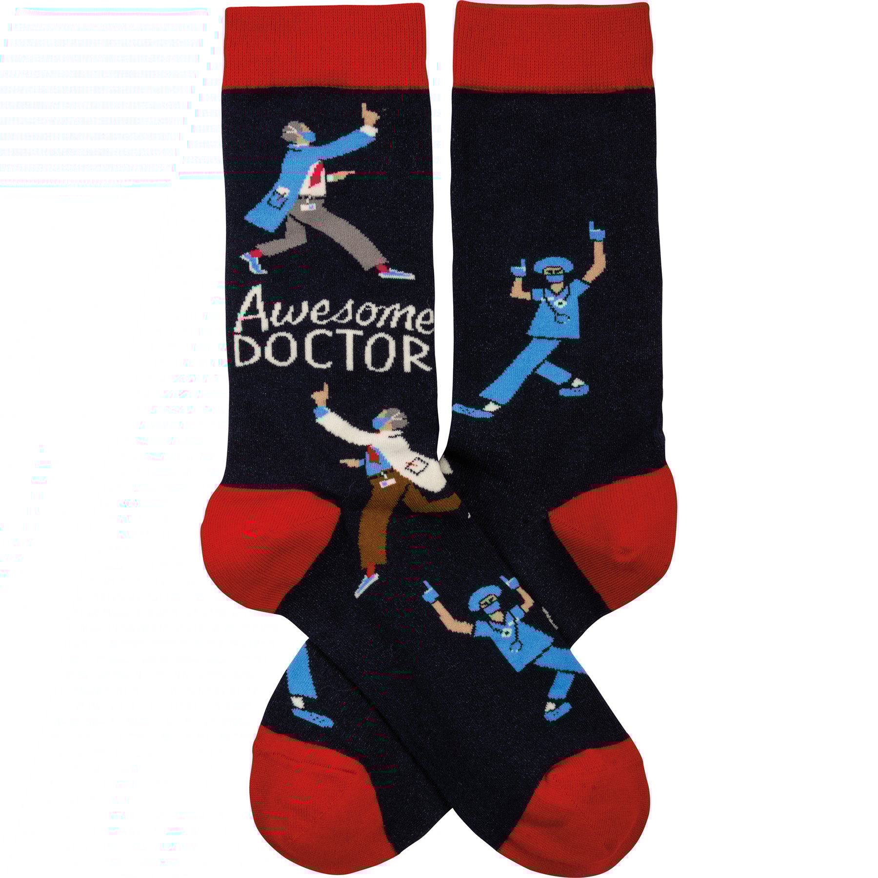 These colorful socks feature woven designs with coordinating "Awesome Doctor" sentiment. Cotton, nylon, spandex. One size fits most.