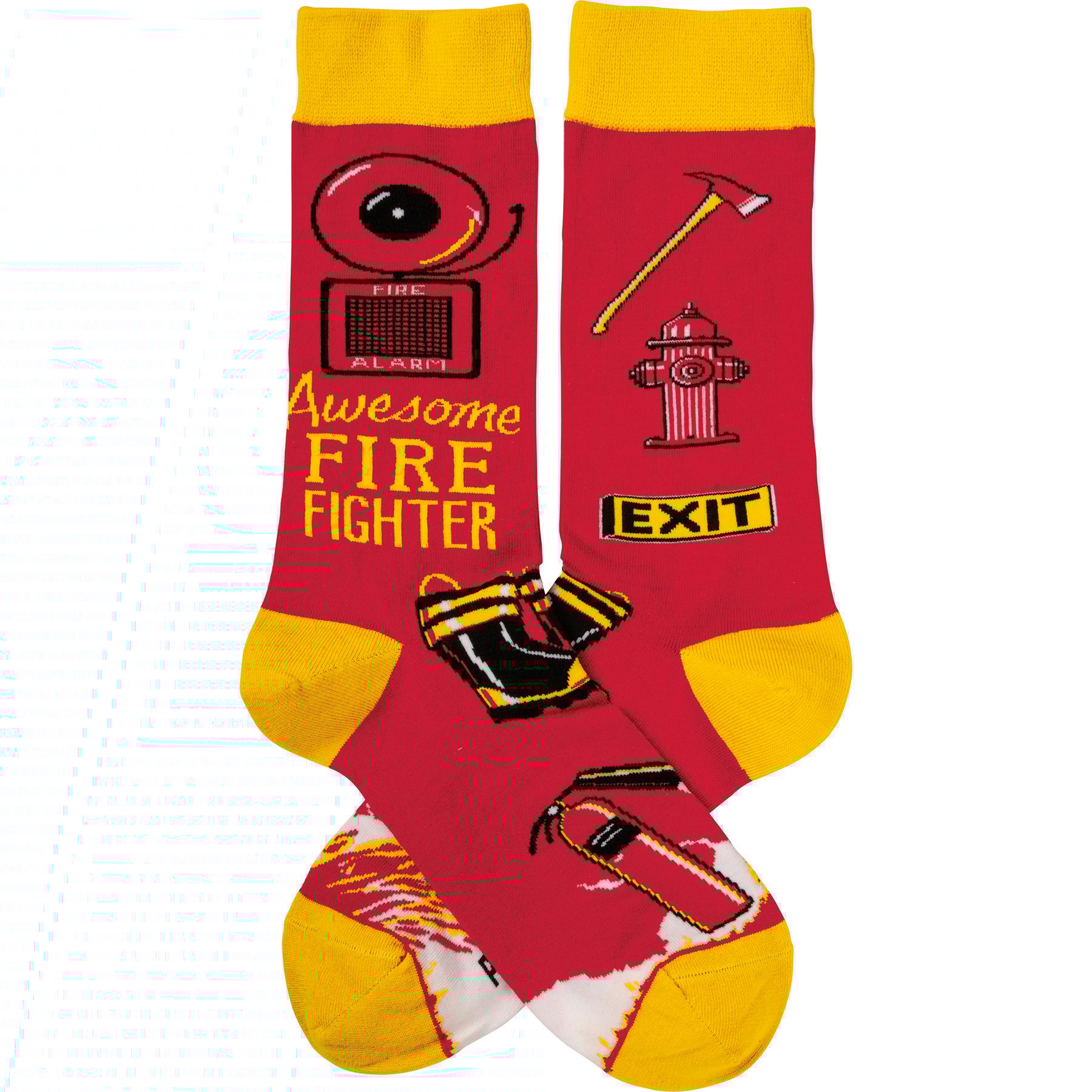 These colorful socks from our LOL Made You Smile Collection feature woven designs with coordinating "Awesome Fire Fighter" sentiment. Cotton, nylon, spandex. These awesome fire fighter socks are one size fits most.