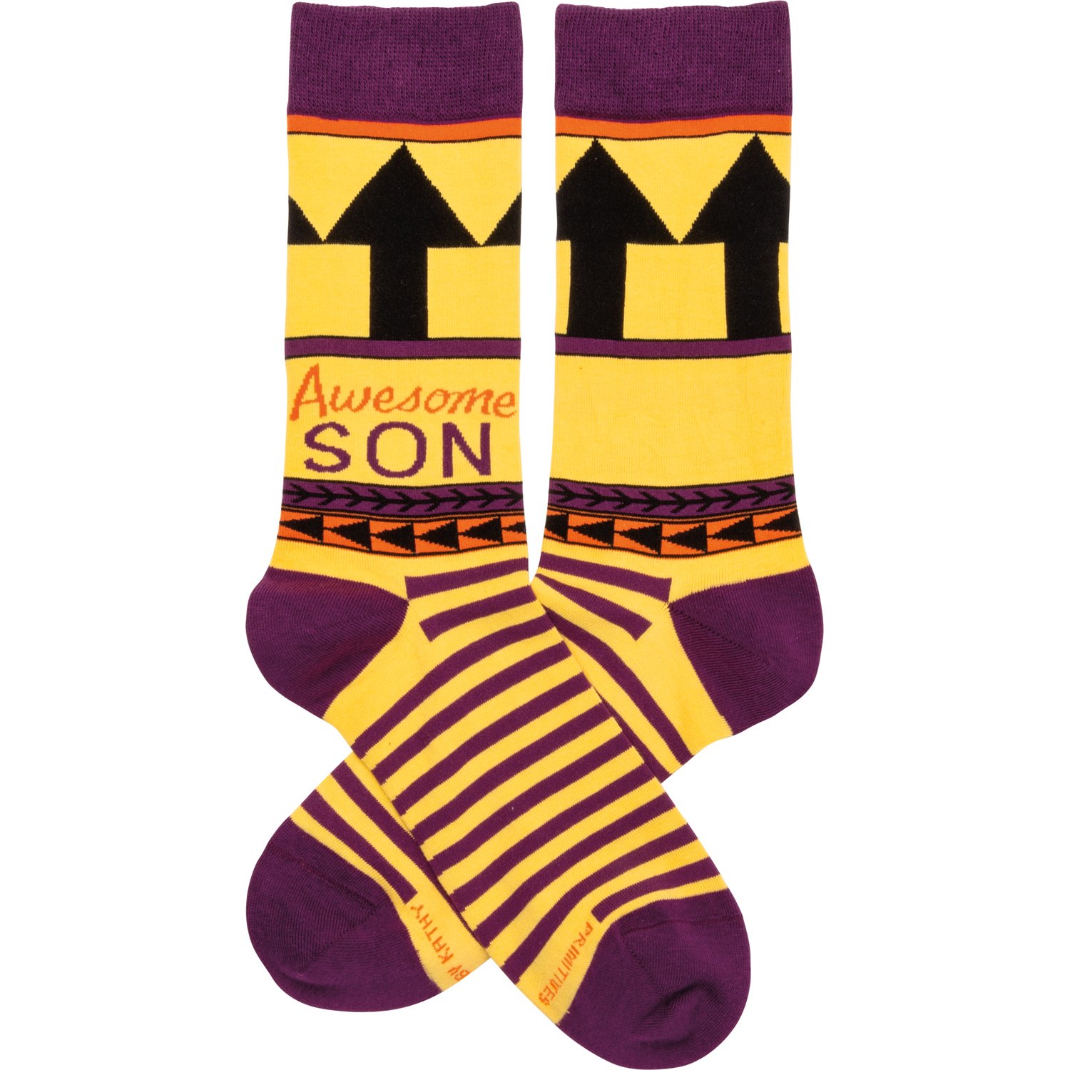 These colorful socks from our LOL Made You Smile Collection feature woven designs with coordinating "Awesome Son" sentiment. Cotton, nylon, spandex. These awesome son socks are one size fits most.