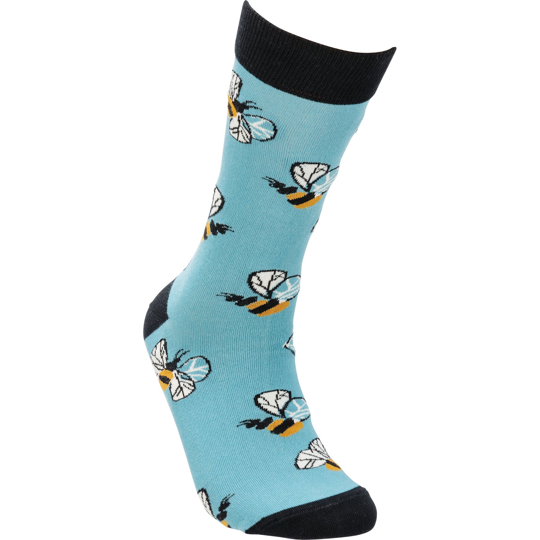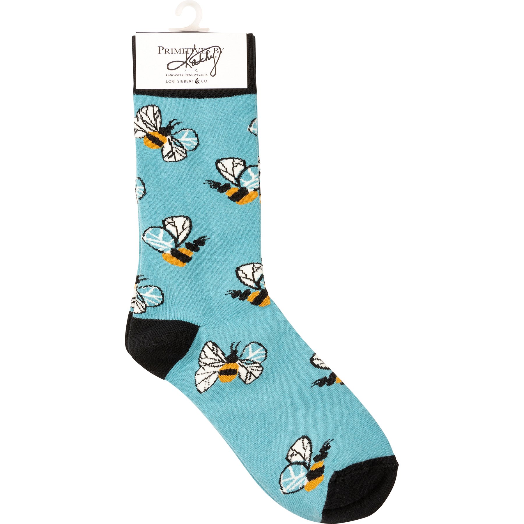 A pair of colorful socks displaying a bee pattern recreated from an original hand painted design that pairs well with gifts from our Garden Collection. Socks feature a one size fits most design made with cotton, nylon, and spandex. Our Bees socks come with a header card and a clear plastic hanger for easy display. A gift and accessory perfect for everyday self-expression.