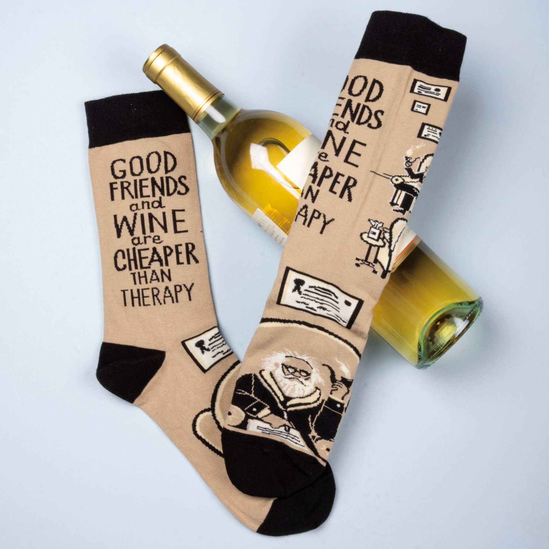 Friends & Wine Cheaper Than Therapy Socks
