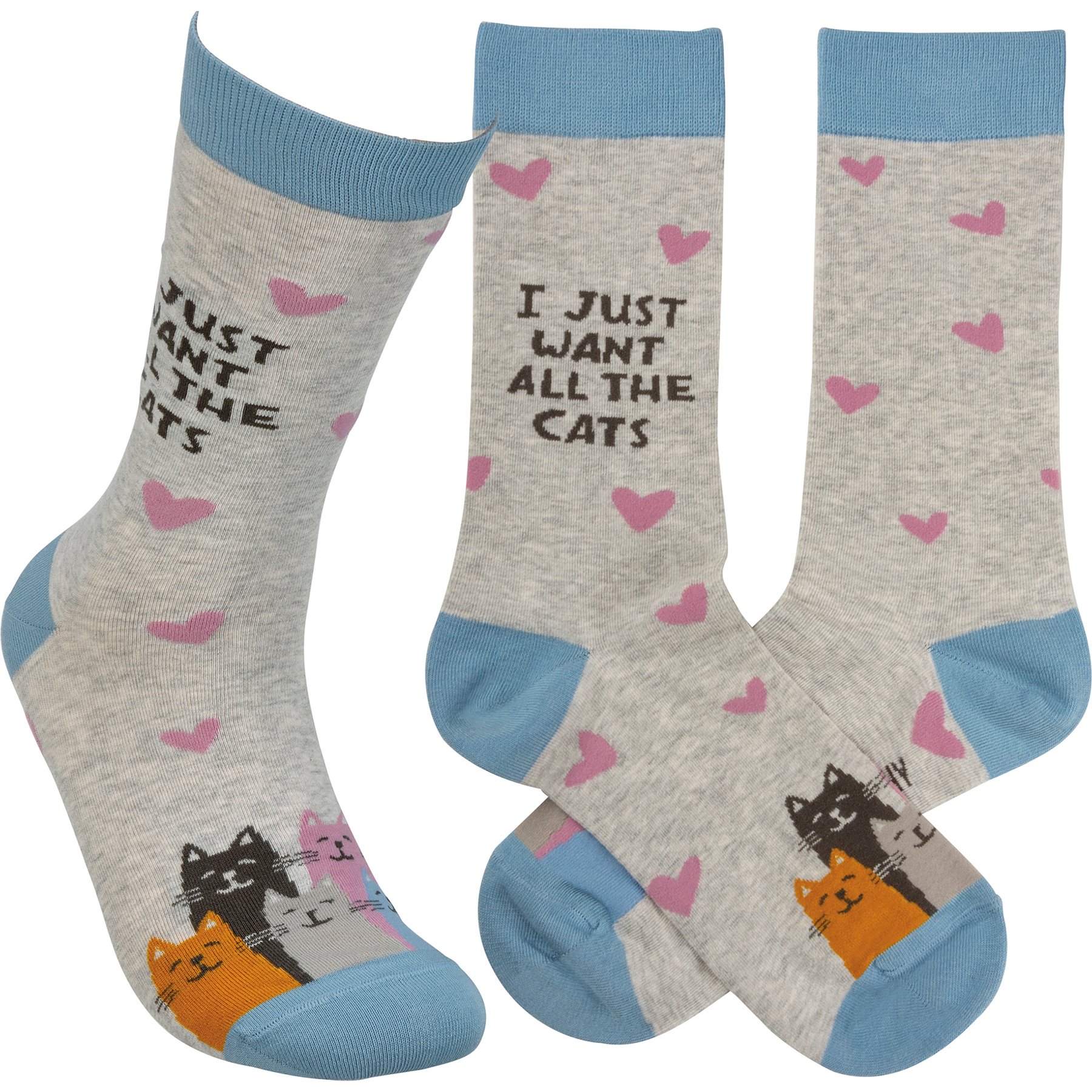 These colorful socks from our best-selling Pet Collection feature woven designs with coordinating "I Just Want All The Cats" sentiment. Cotton, nylon, spandex. Our I Just Want All The Cats socks are one size fits most.