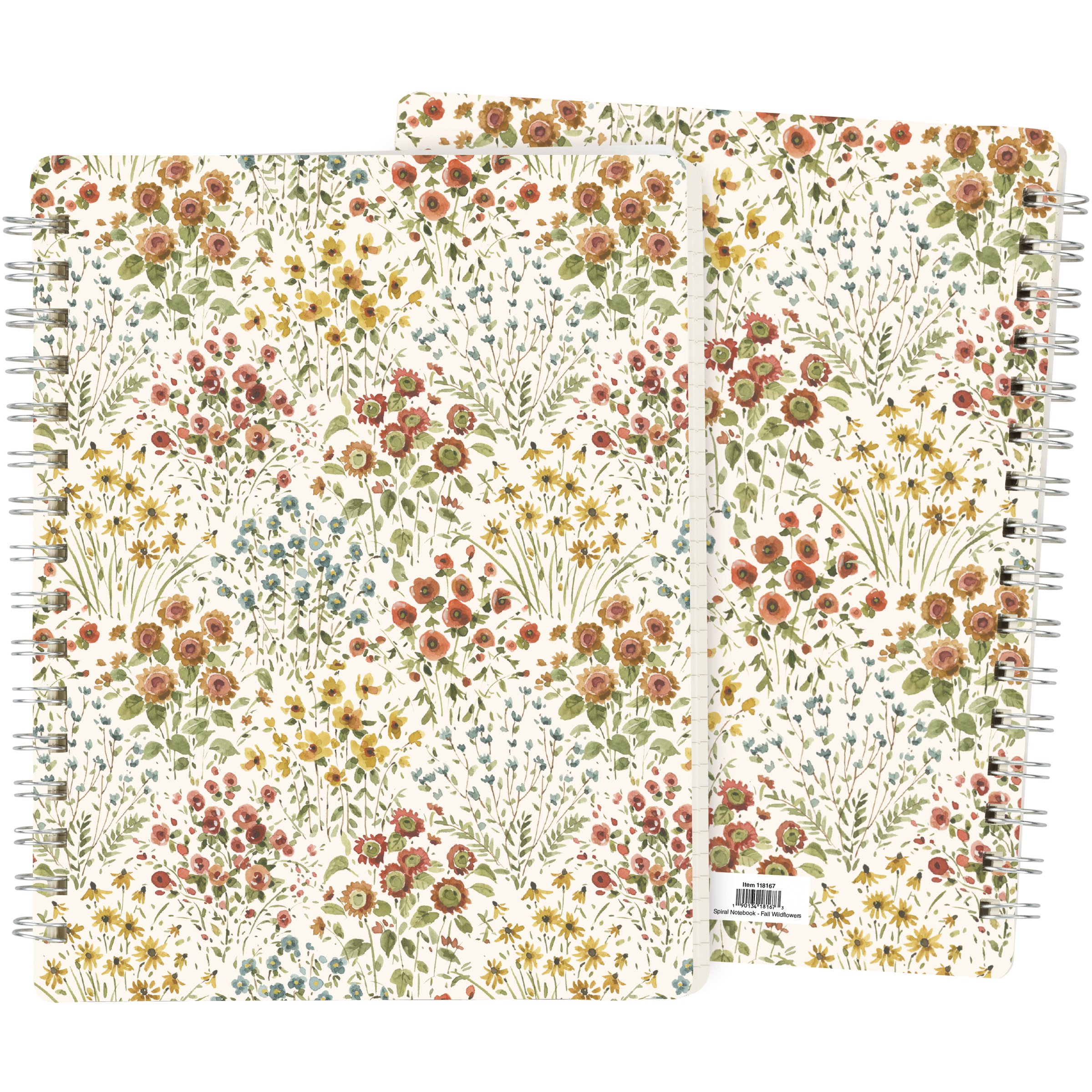 A double-sided spiral notebook from our Fall & Harvest Collection displaying a colorful pattern of mixed fall wildflowers on both covers. Design is replicated from original art hand painted in a delicate watercolor style. Our Fall Wildflower spiral notebook includes 120 lined pages. A charming fall-themed accessory that is also great for gifting.