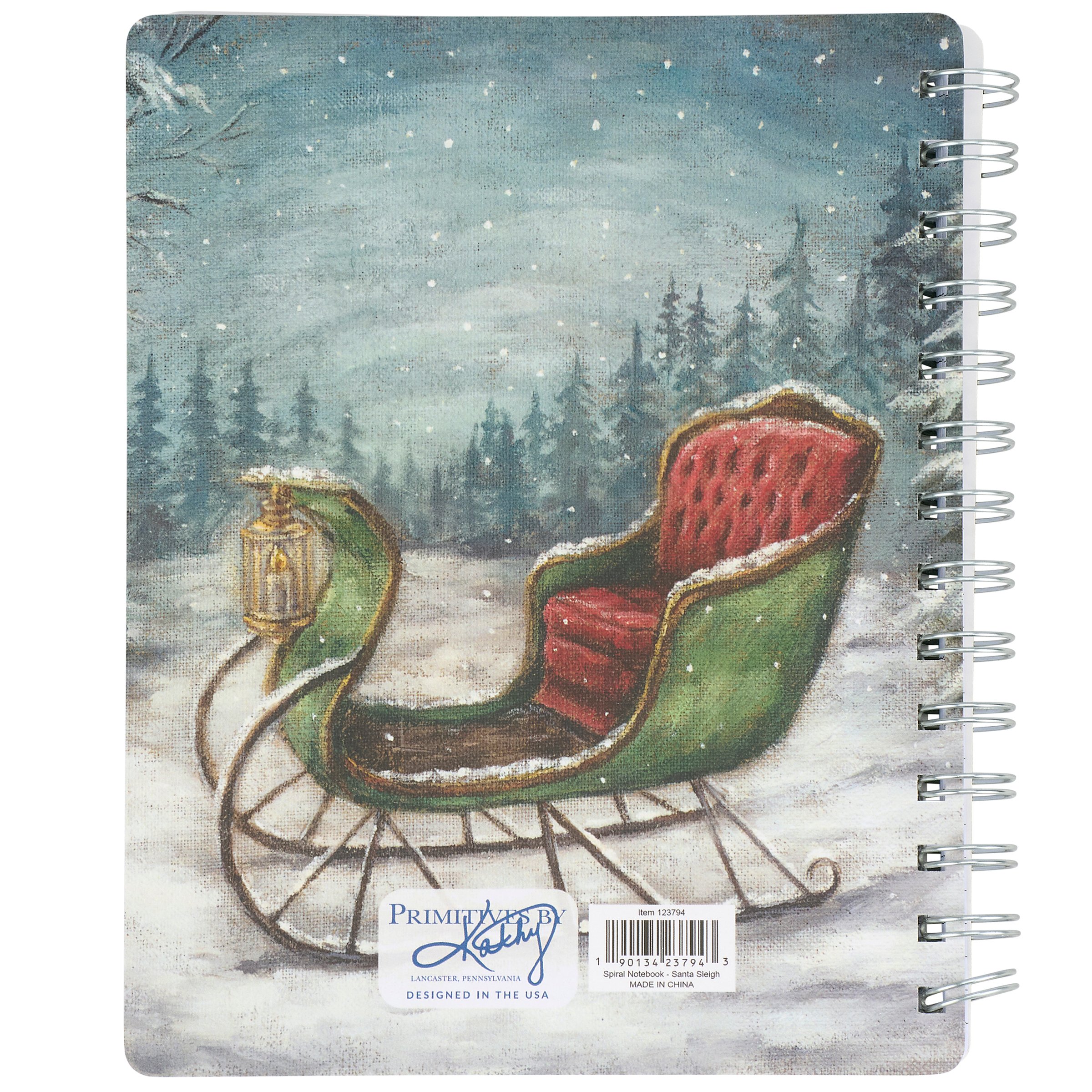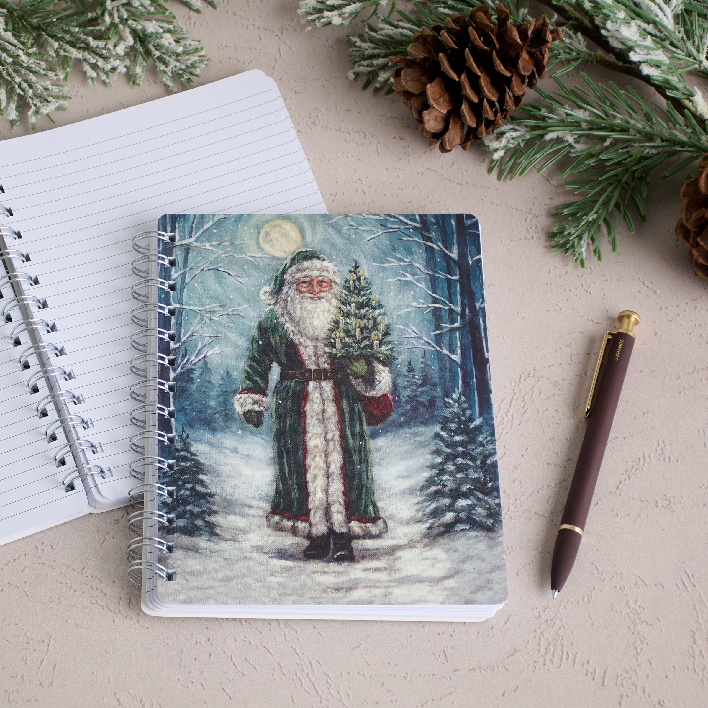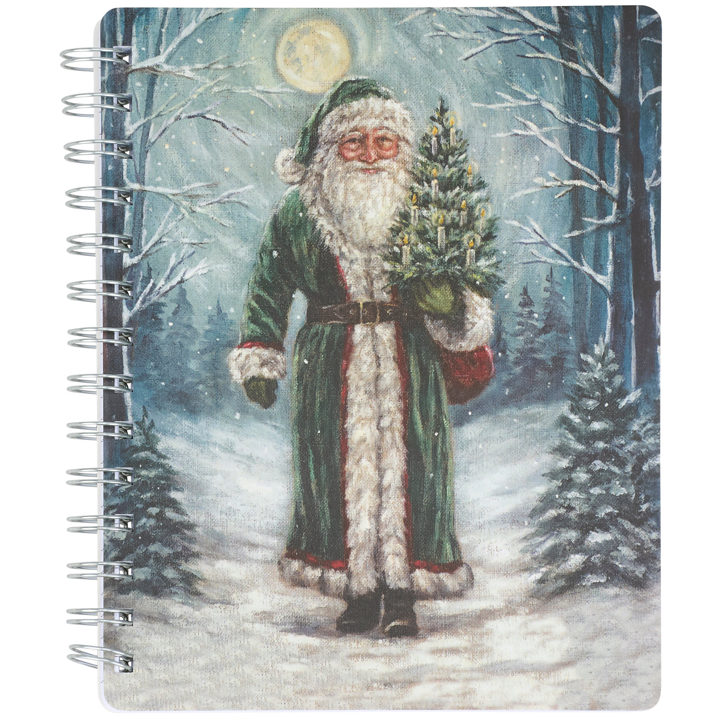 A double-sided spiral notebook from our Christmas Collection displaying a winter scene of a vintage old world Santa on the front cover and a sleigh on the back cover. Vintage Santa design is replicated from original artwork painted onto burlap canvas, giving the art a unique depth and texture. Our Santa Sleigh spiral notebook includes 120 lined pages. A vintage Christmas gift perfect for a seasonal accessory.