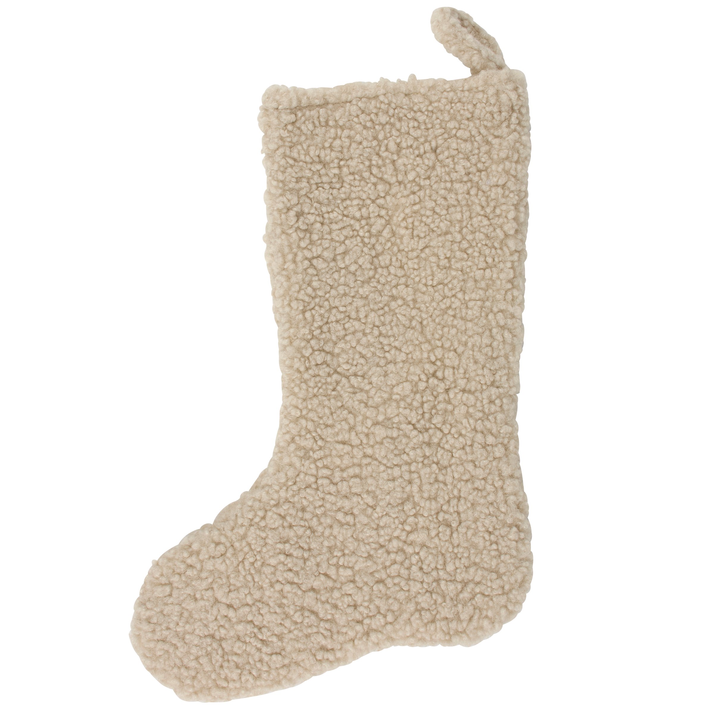 A stocking from our Christmas Collection displaying a embroidered snowflakes on faux sherpa in a neutral color palette that coordinates well with a variety of seasonal styles. Our Faux Sherpa Snowflake stocking is ready to hang via the loop attached to the top. A neutral Christmas home accent perfect for seasonal decorating and holiday gifting.
