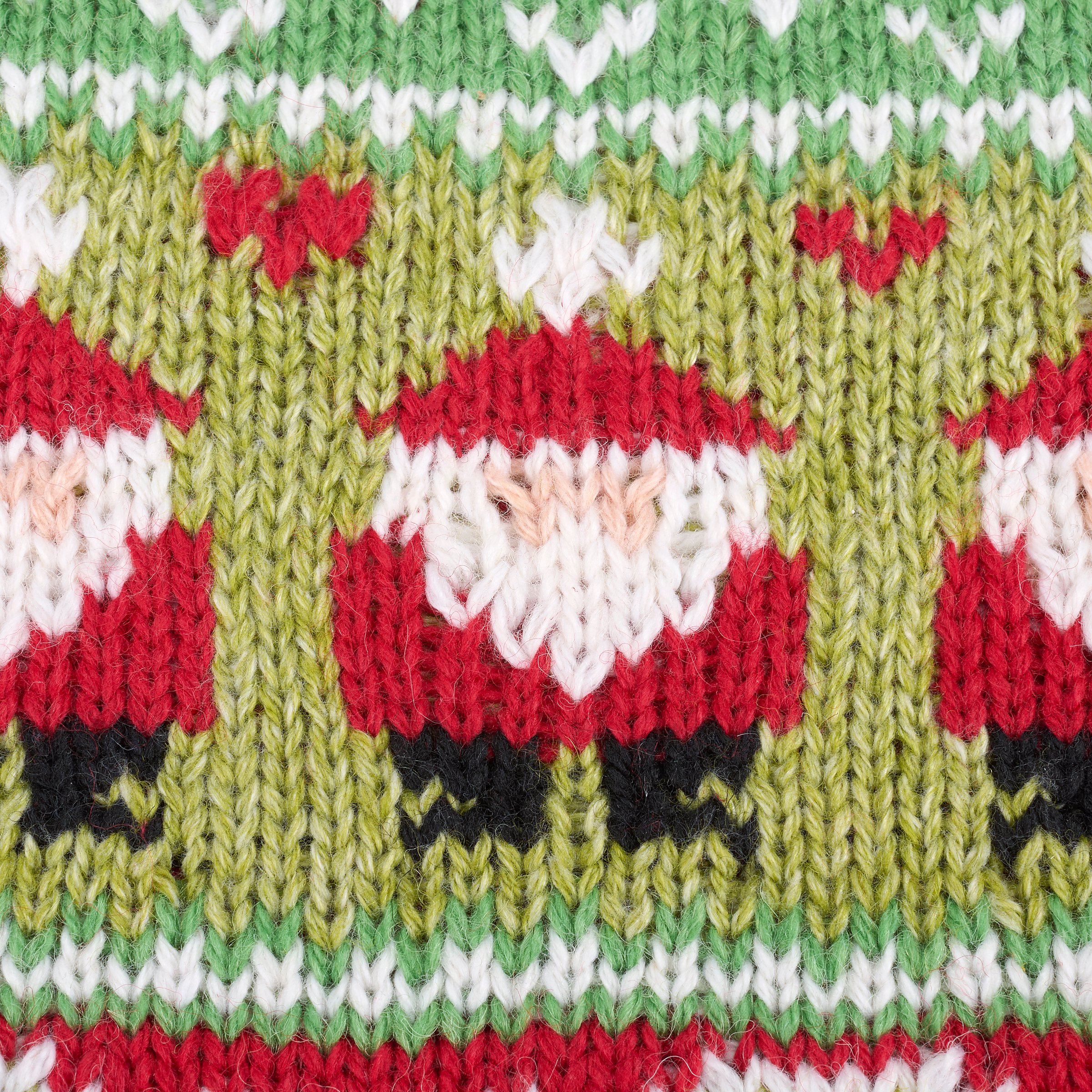 A double-sided stocking from our Christmas Collection displaying colorful knit designs of Santas and classic holiday stocking patterns throughout the stocking. Our Knit Santas stocking is ready to hang via the loop attached to the top. A vintage Christmas home accent perfect for seasonal decorating and holiday gifting.