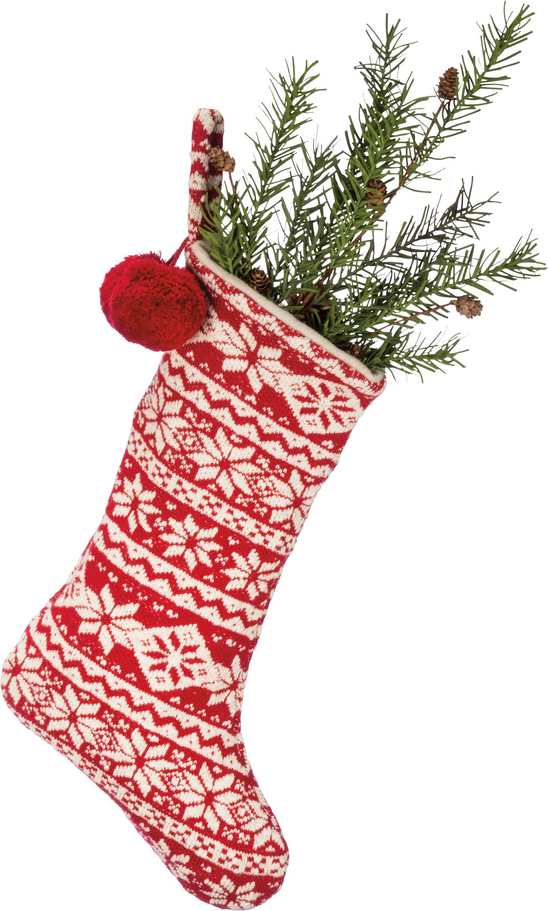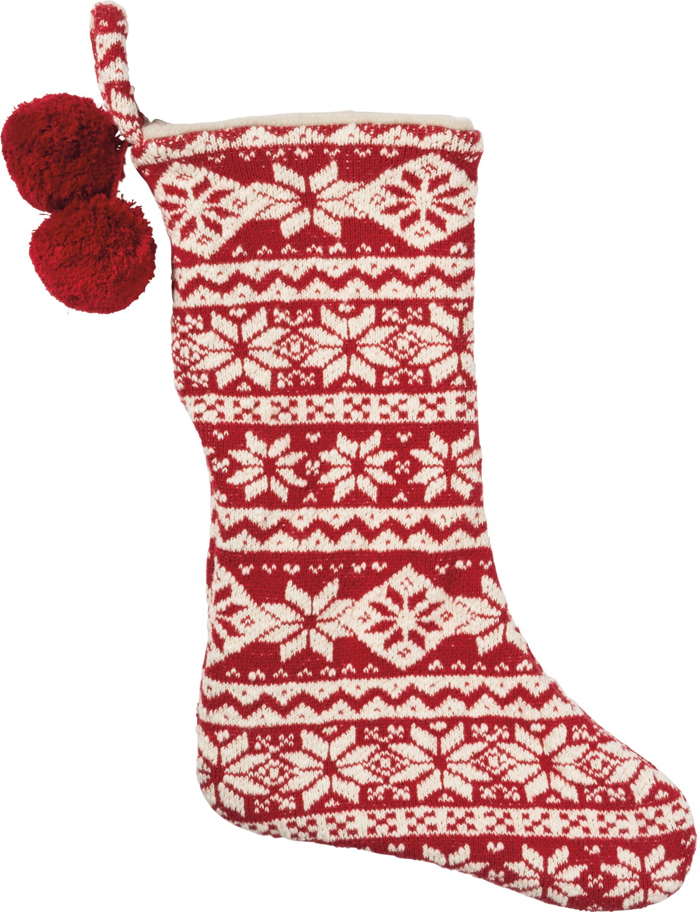 A rustic, Nordic-inspired thick cotton knit stocking from our Christmas Collection with pom pom details and border print patterned designs. Contains top loop for easy hanging and decorating. Our Nordic Christmas Stocking complements well with coordinating design pieces for a festive and cozy home decor collection.
