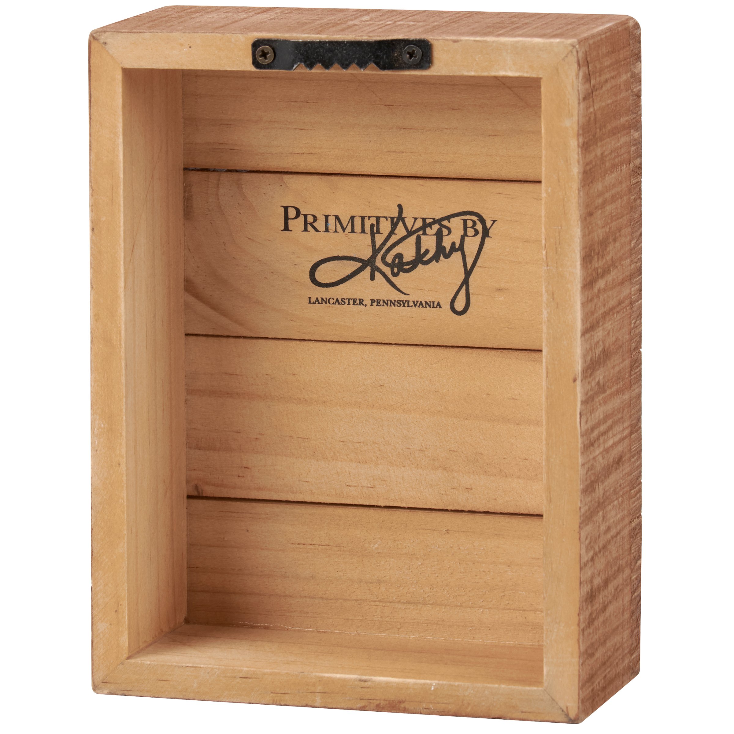 A slat wood box sign featuring a hand-strung Christmas tree with star design, distressed "Merry & Bright" bottom sentiment, and subtle starry print throughout. Easy to hang or can free-stand alone.