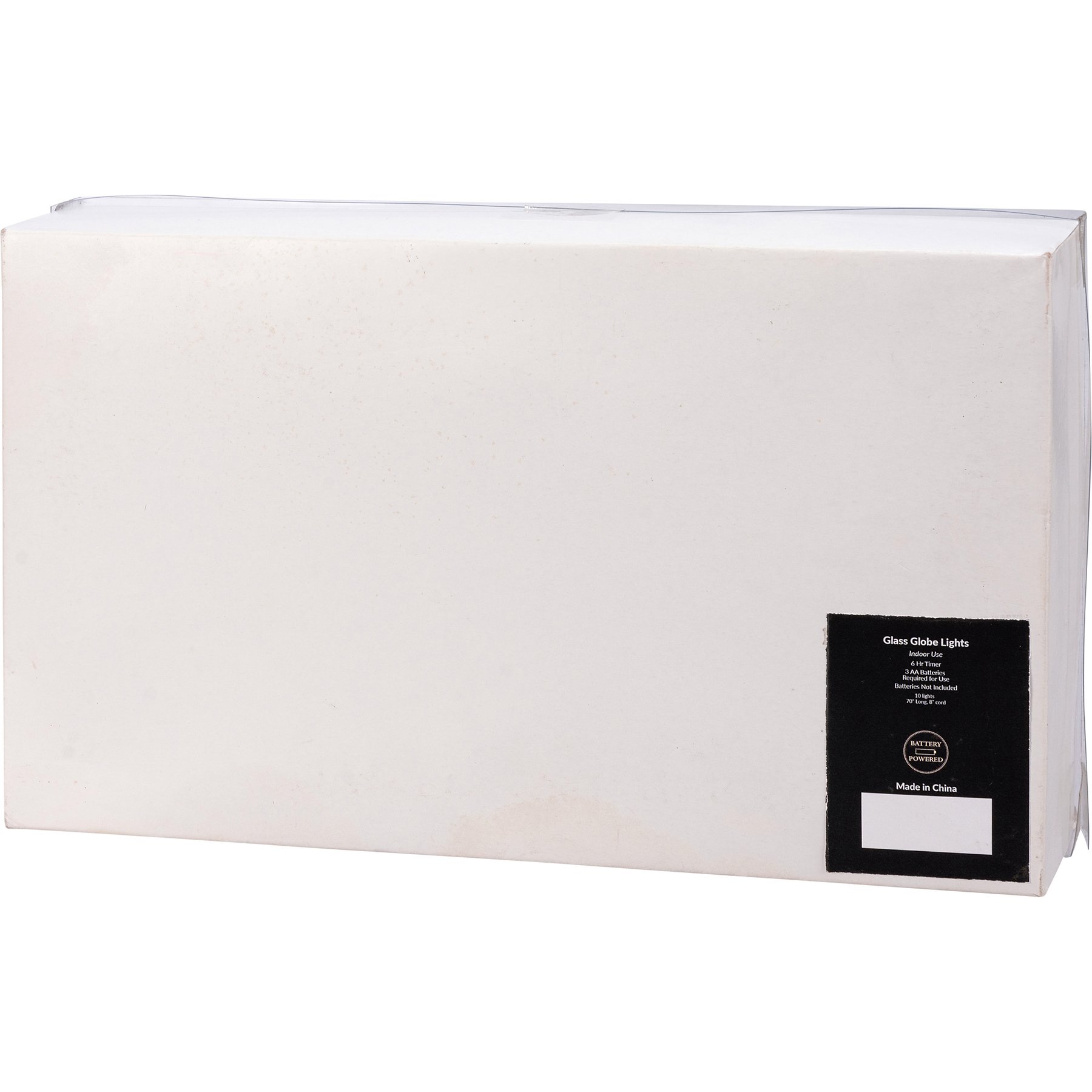 A string of multicolored glass globe-shaped lights strung together via jute rope from our Beach Collection. Lights feature a 6 hour timer and require 3 AA batteries (not included). Our Glass Globe string lights make a bright addition to any space.