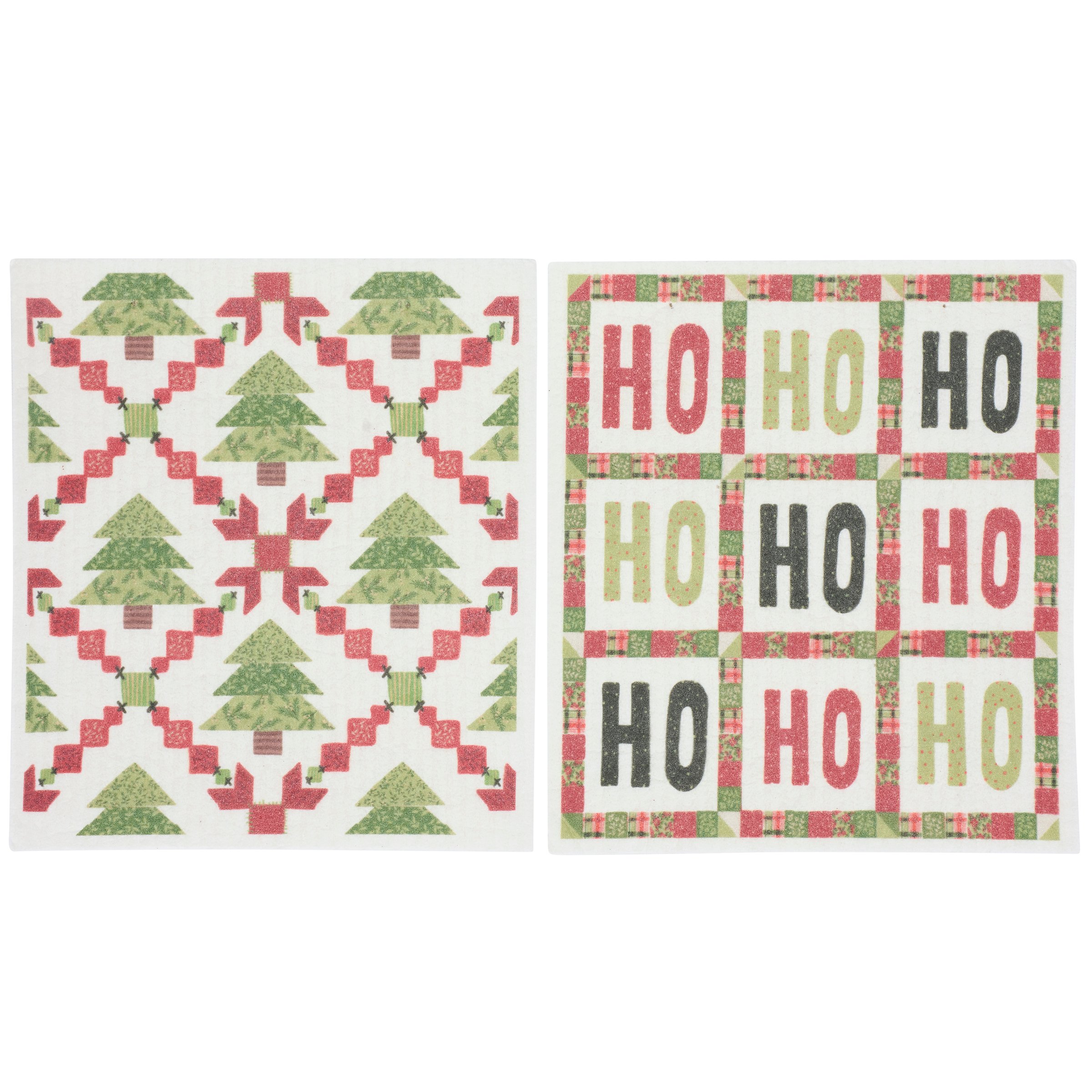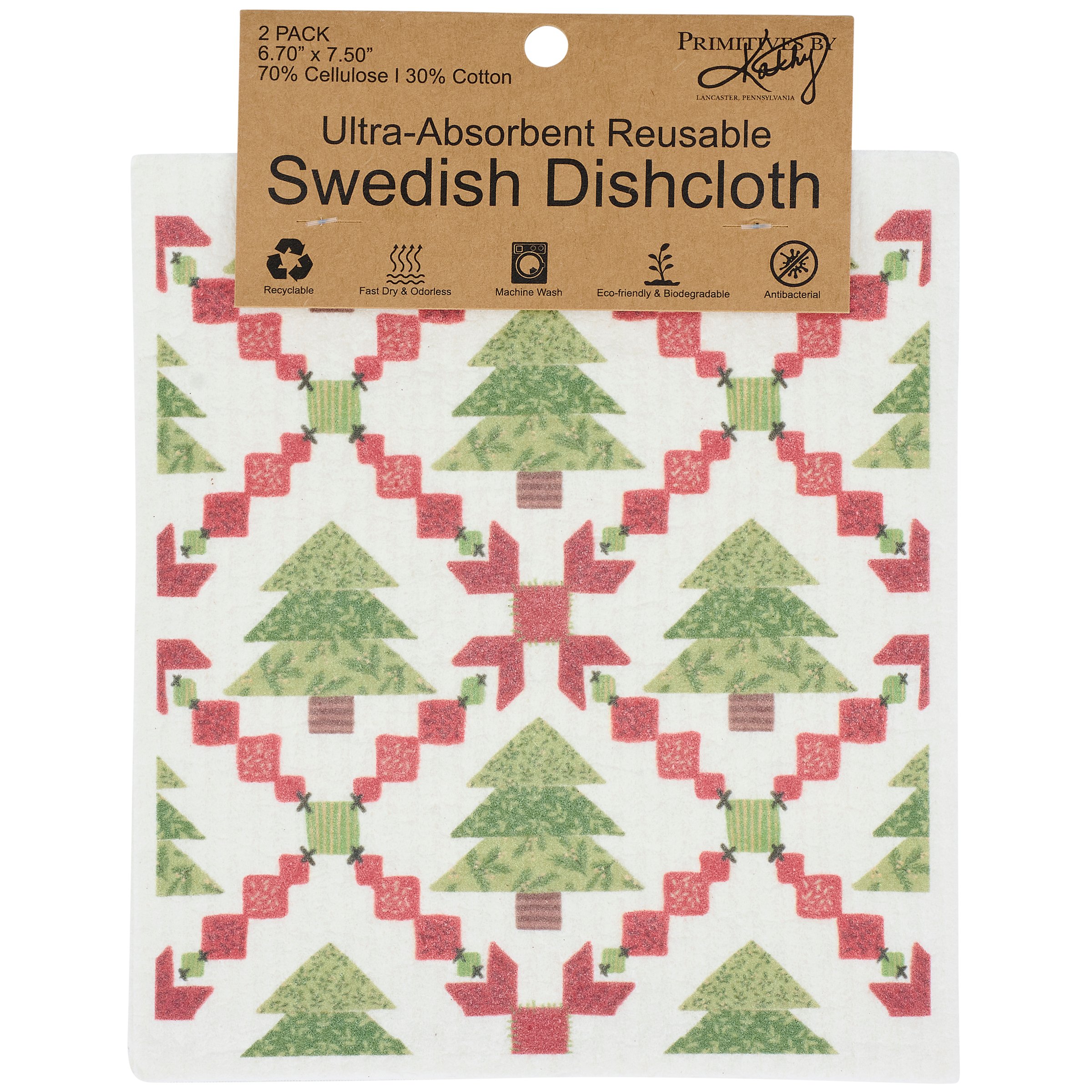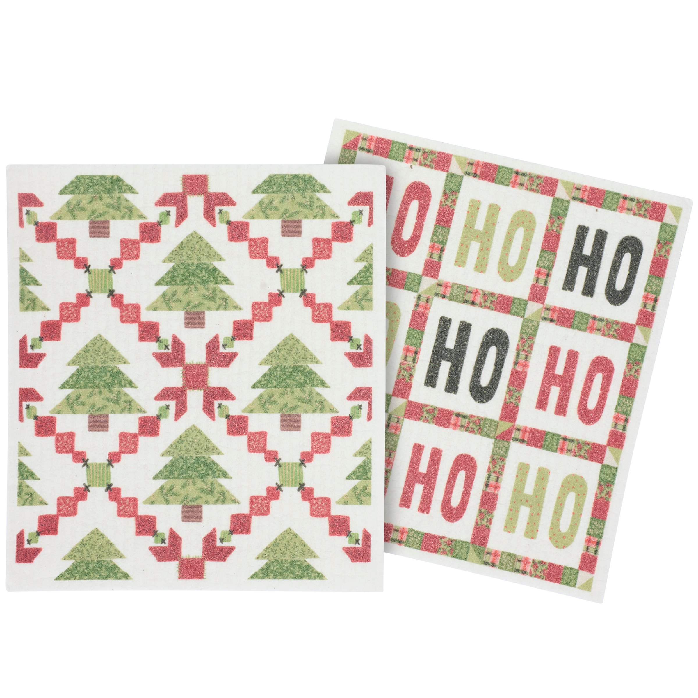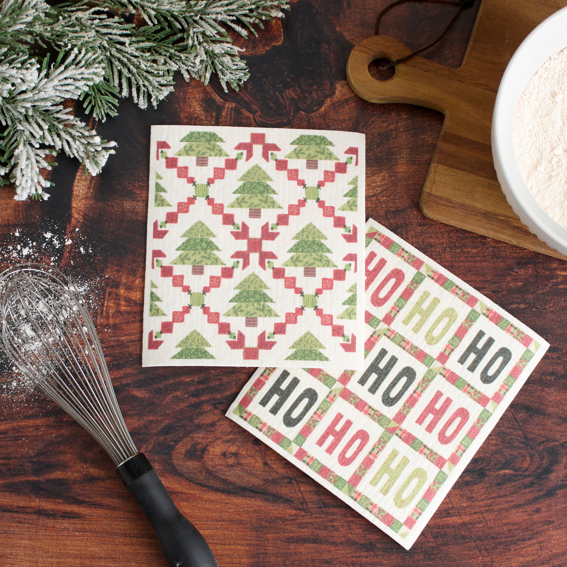 Safe to use on all types of surfaces, eco-friendly Swedish Dishcloths dry quickly and are antibacterial for more hygienic cleaning with reduced waste. This set of 2 Swedish Dishcloths from our Christmas Collection features craft inspired Christmas quilt designs on each dishcloth. Holiday quilt designs are replicated from original hand painted watercolor art. Our Christmas Quilt Swedish cloth set is ultra-absorbent and conveniently machine-washable for easy cleaning and reuse. Seasonal dishcloths are attached to header card with hole for easy rack display. A craft themed set of reusable dishcloths perfect for replacing dull sponges and paper towels with long-lasting colorful designs.