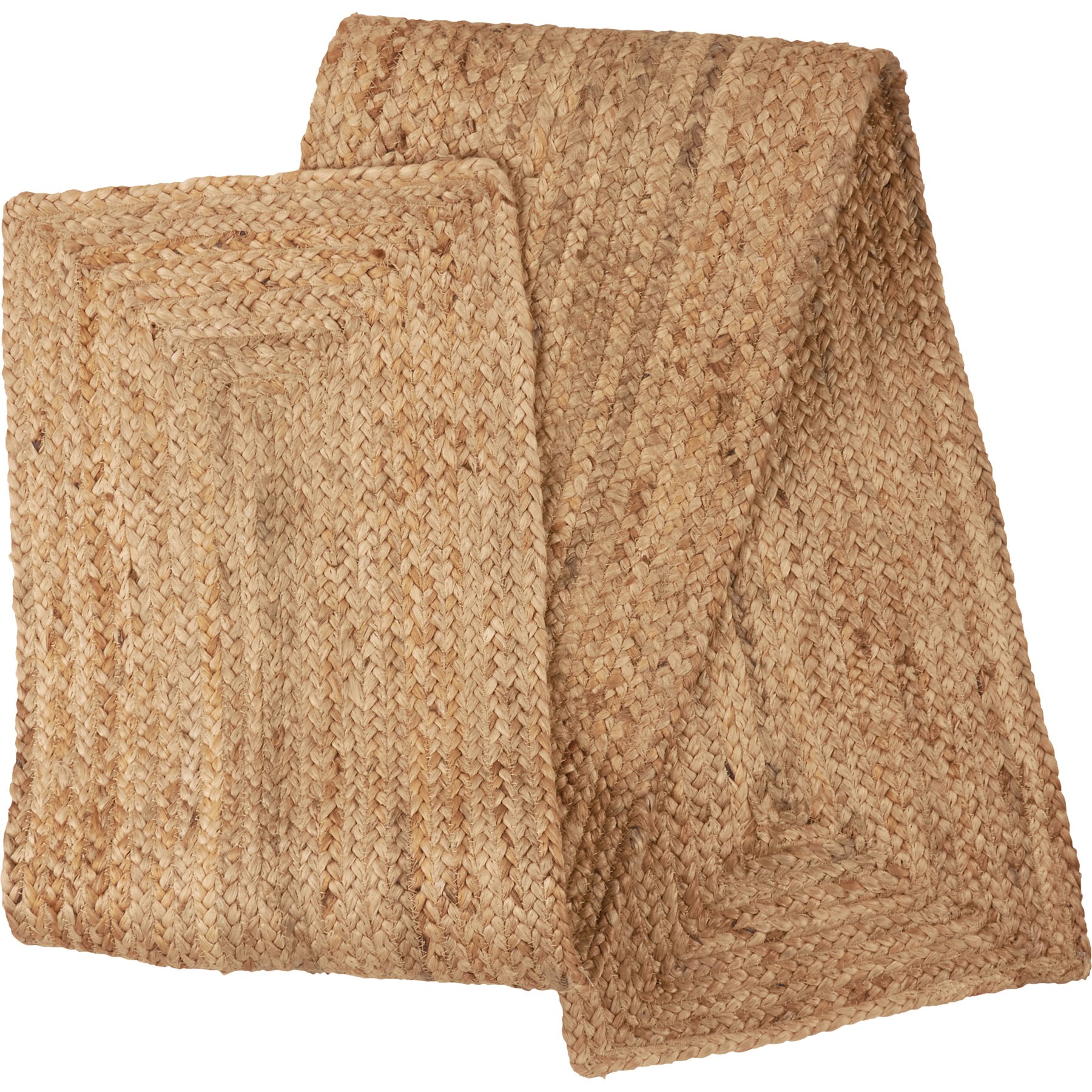 A table runner from our Bohemian Collection made with braided jute for a natural aesthetic. Our Natural Jute runner can be used for table settings or as an accent to a home décor display. Spot clean only. A neutral everyday home accent that coordinates with a variety of décor.