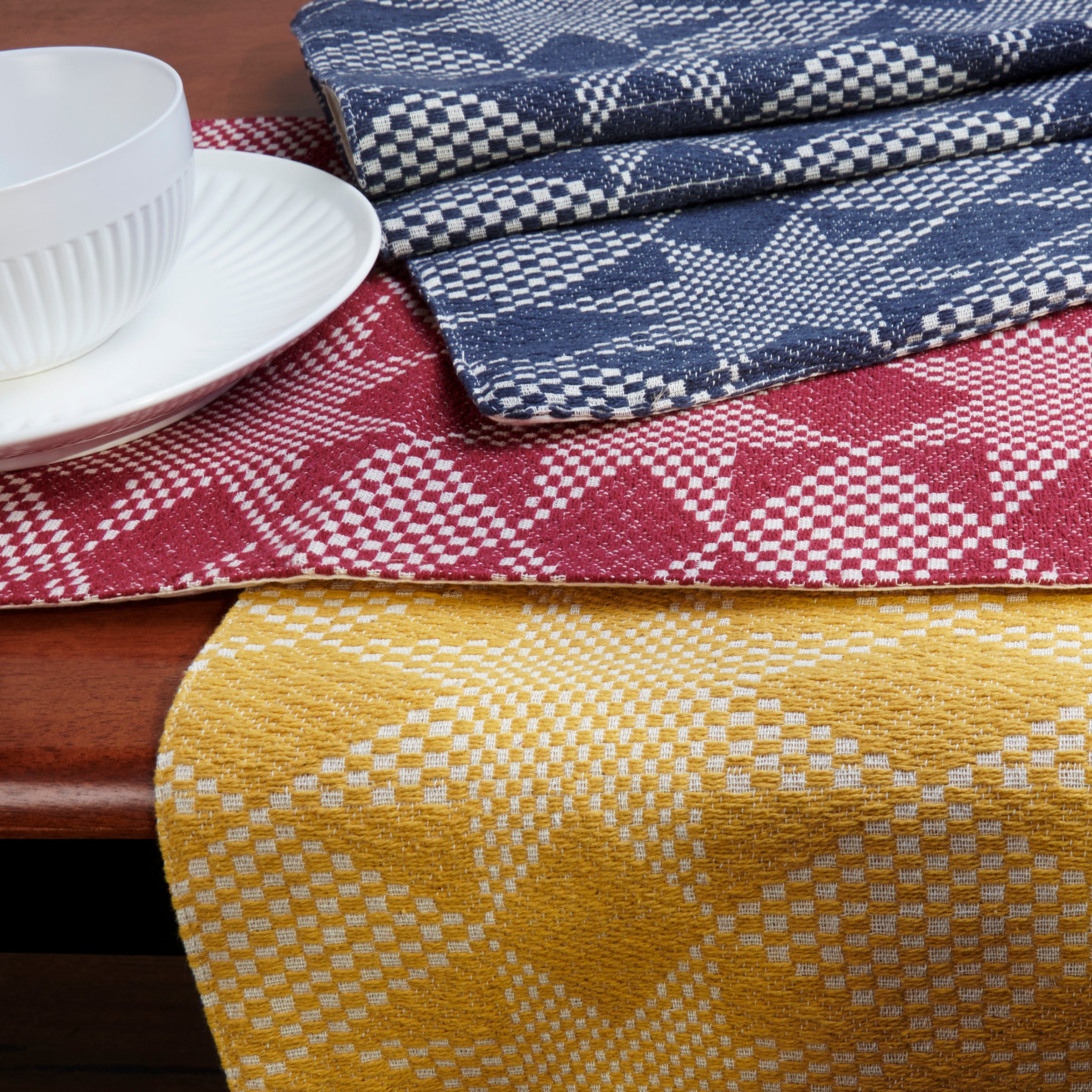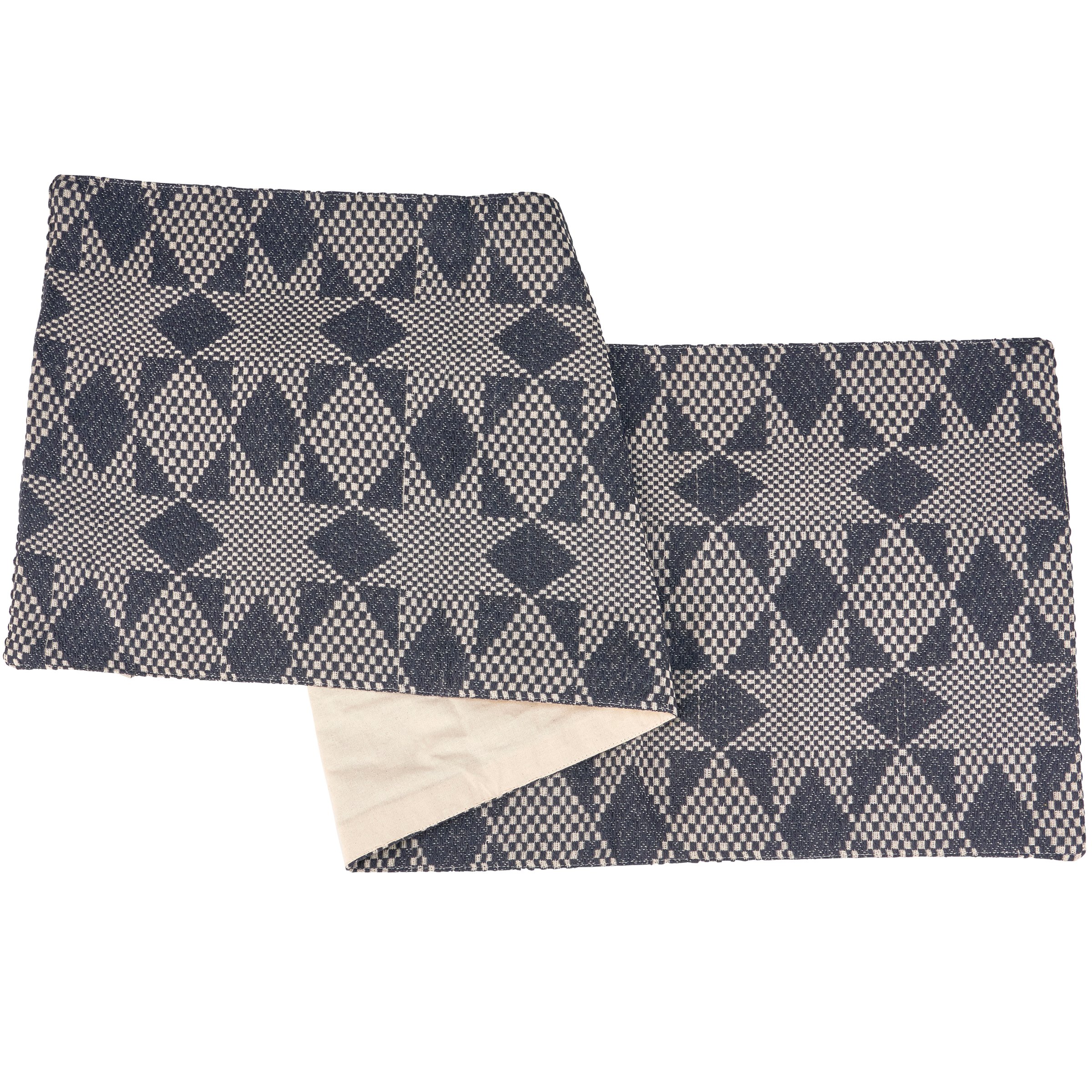 A cotton table runner from our Primitive Collection displaying a stars pattern in navy and cream. Runner can be used for table settings or as an accent to a home décor display. Our Navy Stars table runner is conveniently machine-washable for easy cleaning. Includes 52 inches of length for plenty of coverage. A rustic home accent with a variety of display options.