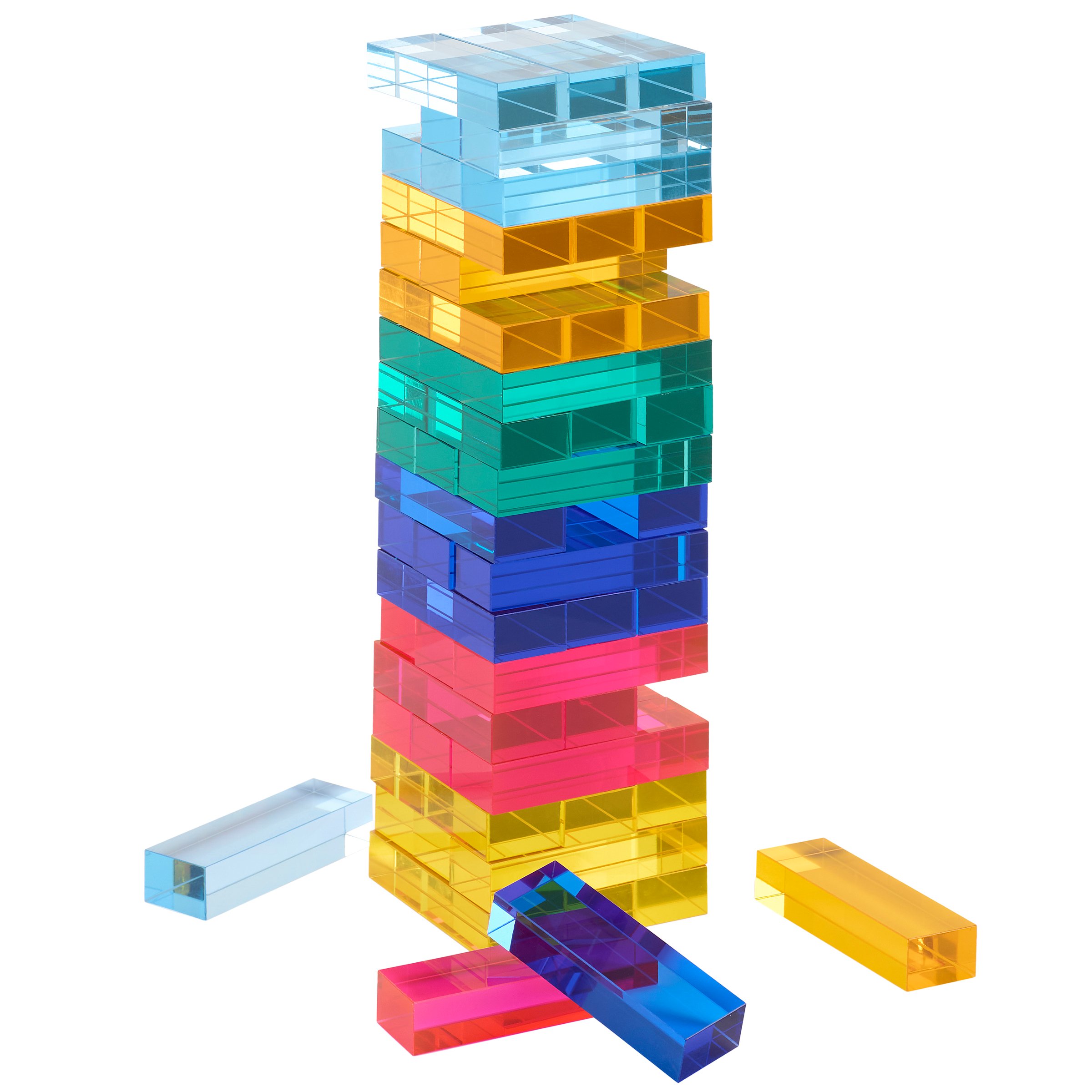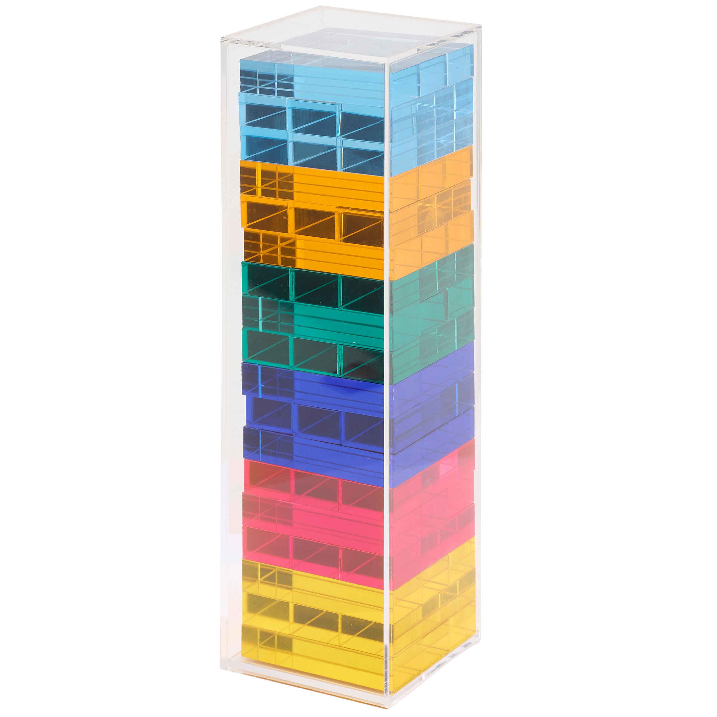 Don't settle for traditional fun and games. This high-quality acrylic version of a tumbling tower flaunting a colorful design is ready for play and looks great on a shelf in between game nights. Our acrylic Tumbling Tower tabletop game includes 54 playing pieces in a variety of colors that neatly fit inside a clear acrylic case that also offers the option to customize in any way they like to express themselves.