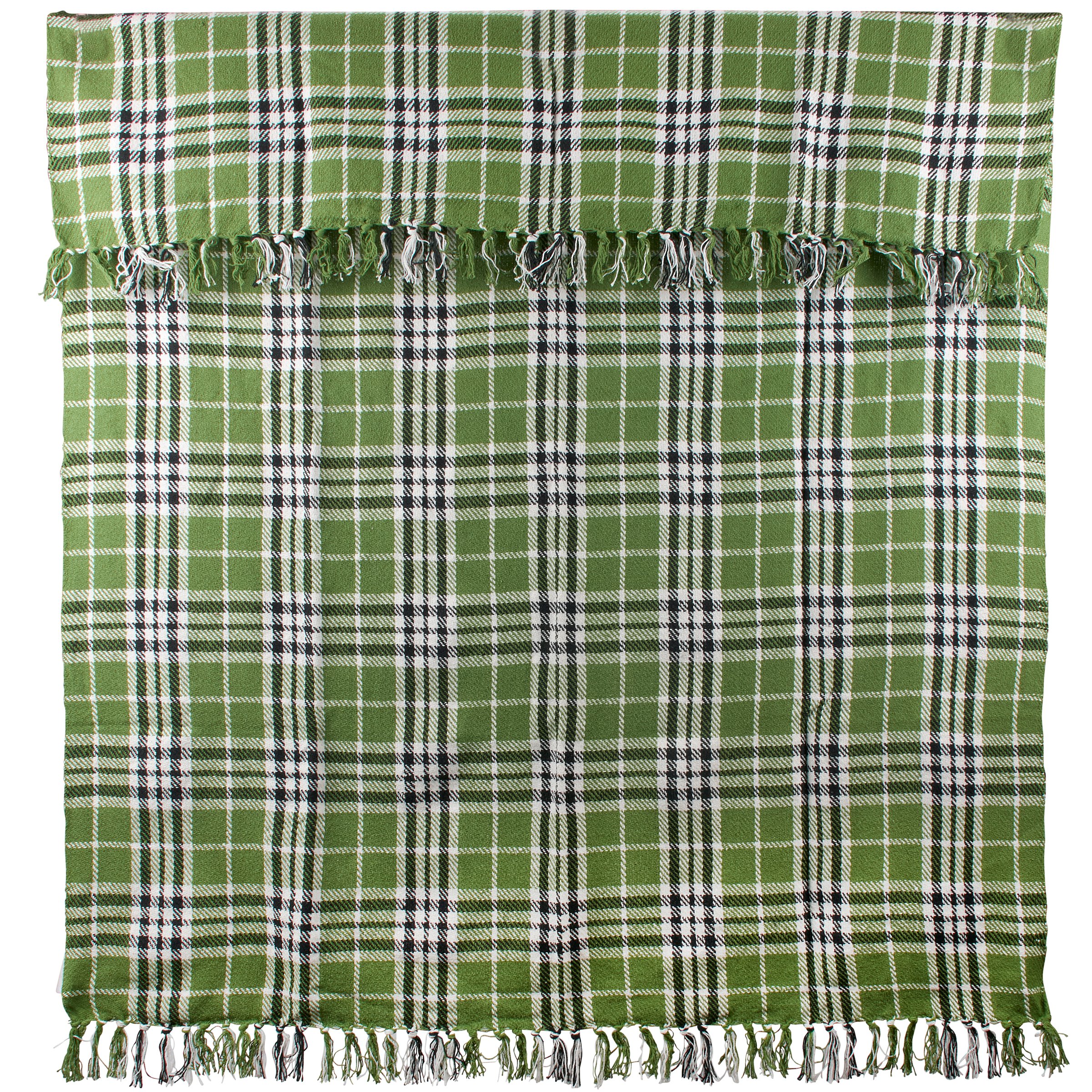 A cotton throw blanket from our St. Patrick's Day Collection displaying a rustic tartan plaid pattern woven throughout in a St. Patrick's Day inspired green color palette with tassels on top and bottom edge. St. Patrick's Day throw blanket measures 50 x 60 inches giving plenty of coverage to accent furniture or to cozy up under the blanket. Our Green Tartan Plaid throw blanket is conveniently machine-washable for easy cleaning. A rustic St. Patrick's Day home accent perfect for adding seasonal style to any room.