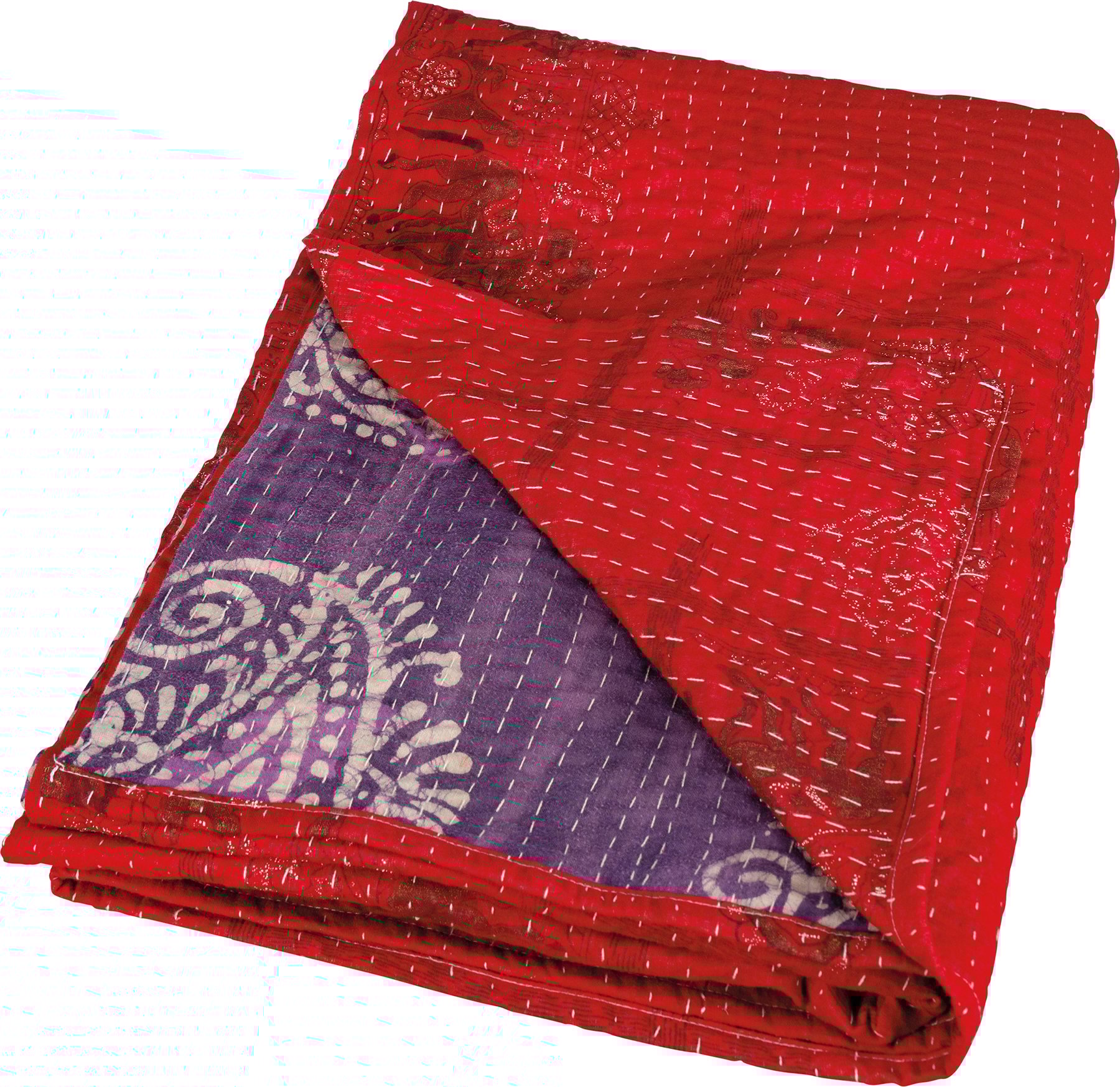 A cotton kantha throw featuring vibrant colors and designs. 50" x 60". Kantha items are made using authentic saris and are hand-stitched by skilled artisans in India. Each one-of-a-kind item features a unique combination of vibrant colors and beautiful patterns that will vary from piece to piece. Items sold individually. Machine-washable.