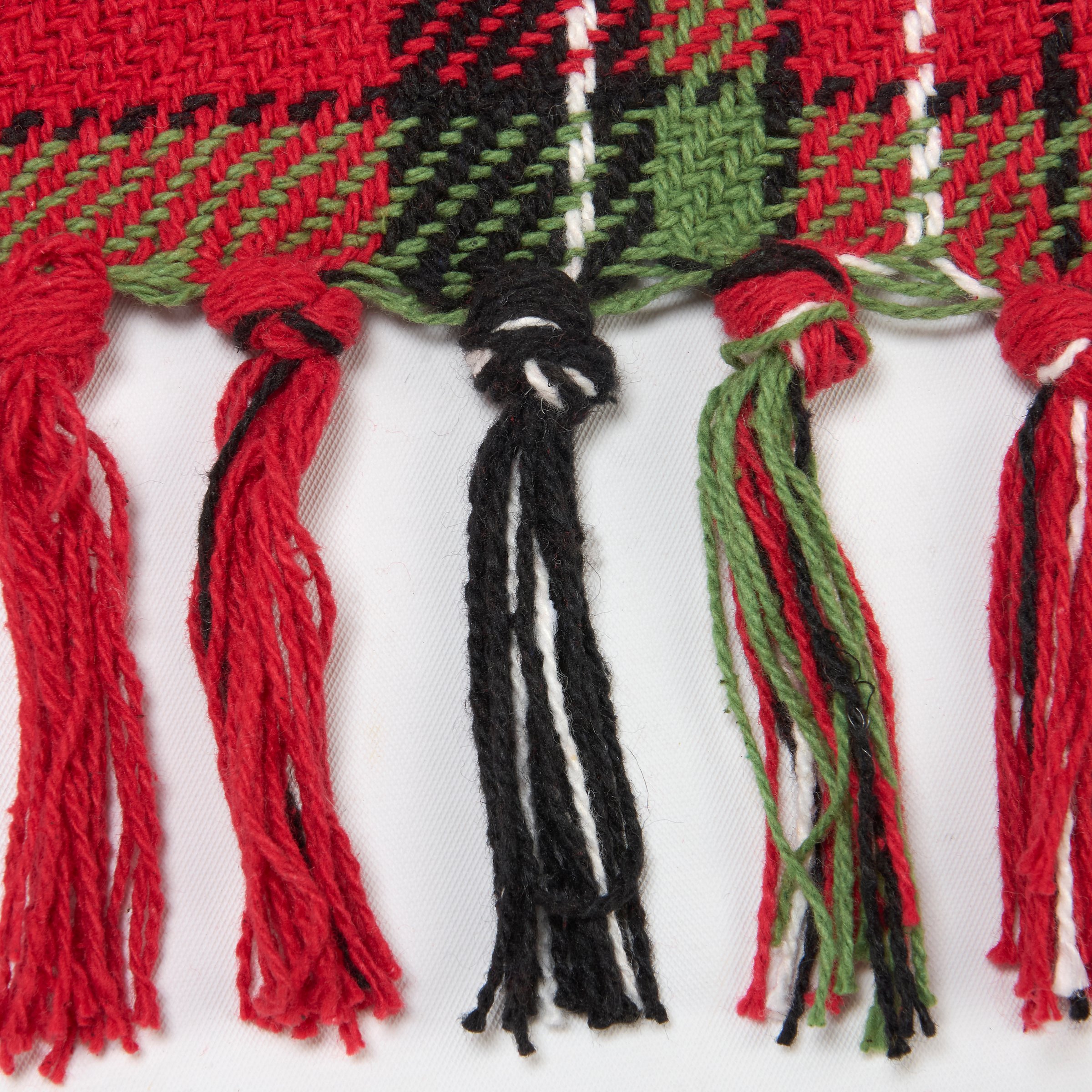 A cotton throw blanket from our Christmas Collection displaying a holiday red plaid pattern woven throughout with tassels on top and bottom edge. Christmas throw blanket measures 50 x 60 inches giving plenty of coverage to accent furniture or to cozy up under the blanket. Our Red Plaid throw blanket is conveniently machine-washable for easy cleaning. A Christmas home accent perfect for adding rustic style to any room.