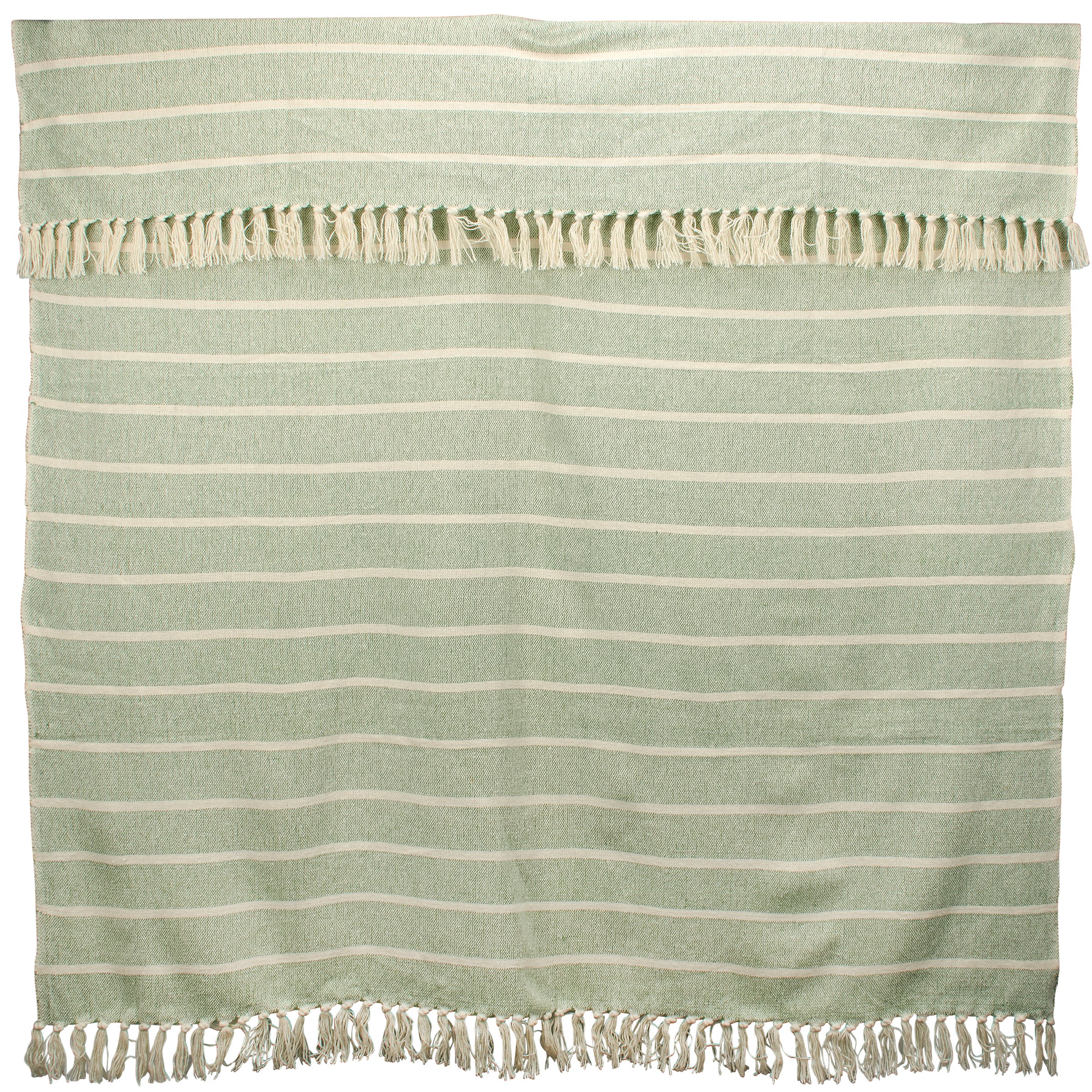 A cotton throw blanket from our Cottage Charm Collection displaying a sage green stripe pattern inspired by vintage cottage decor. Vintage throw blanket measures 50 x 60 inches giving plenty of coverage to accent furniture or to cozy up under the blanket. Our Sage Stripe throw blanket is conveniently machine-washable for easy cleaning. A vintage home accent perfect for adding cottage style to any room.