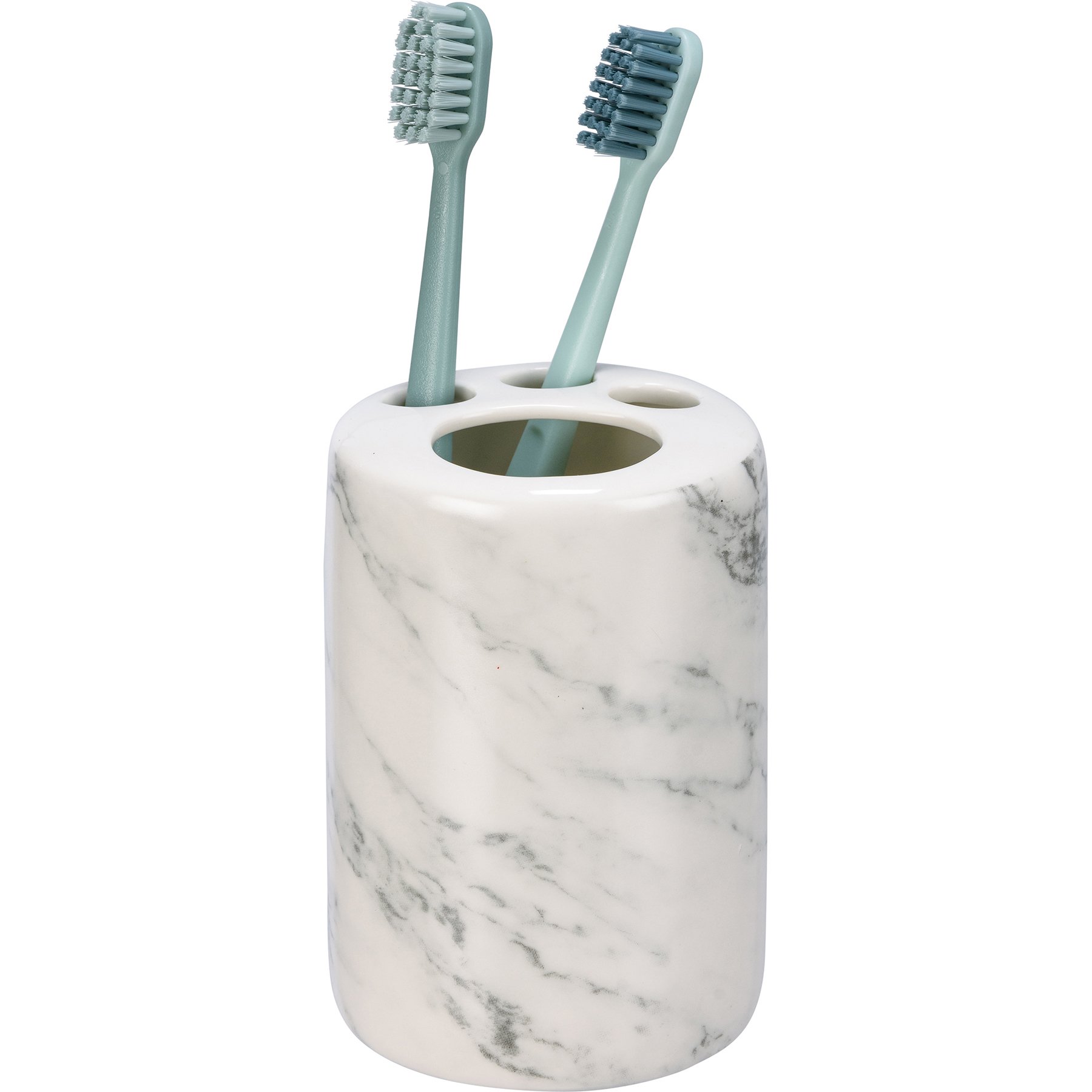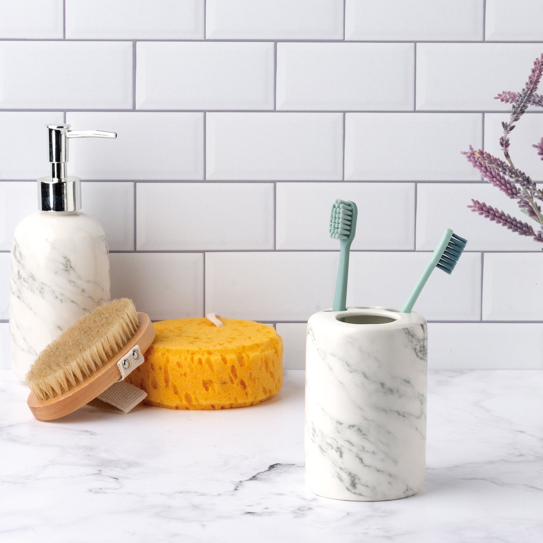 A stoneware toothbrush holder featuring a marbleized design. Perfect addition to any bathroom. Our Marbled toothbrush holder is dishwasher safe.