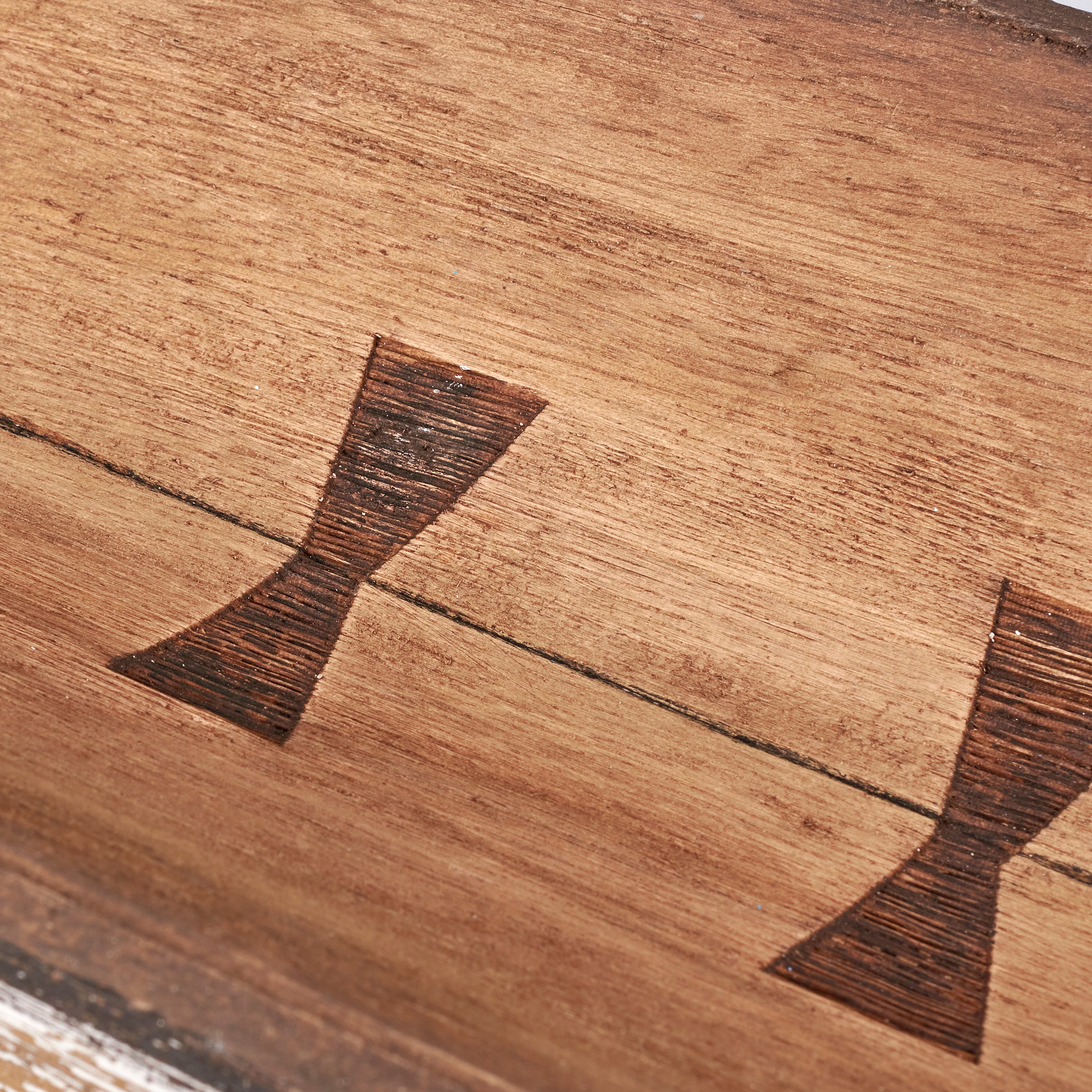 A wooden tray from our Beach Collection displaying a beachwood inspired design with painted accents and distressed details. Our Beachwood tray is perfect for placing décor or daily items. Accessories pictured not included. A beach-themed home accent that coordinates well with primitive home décor.