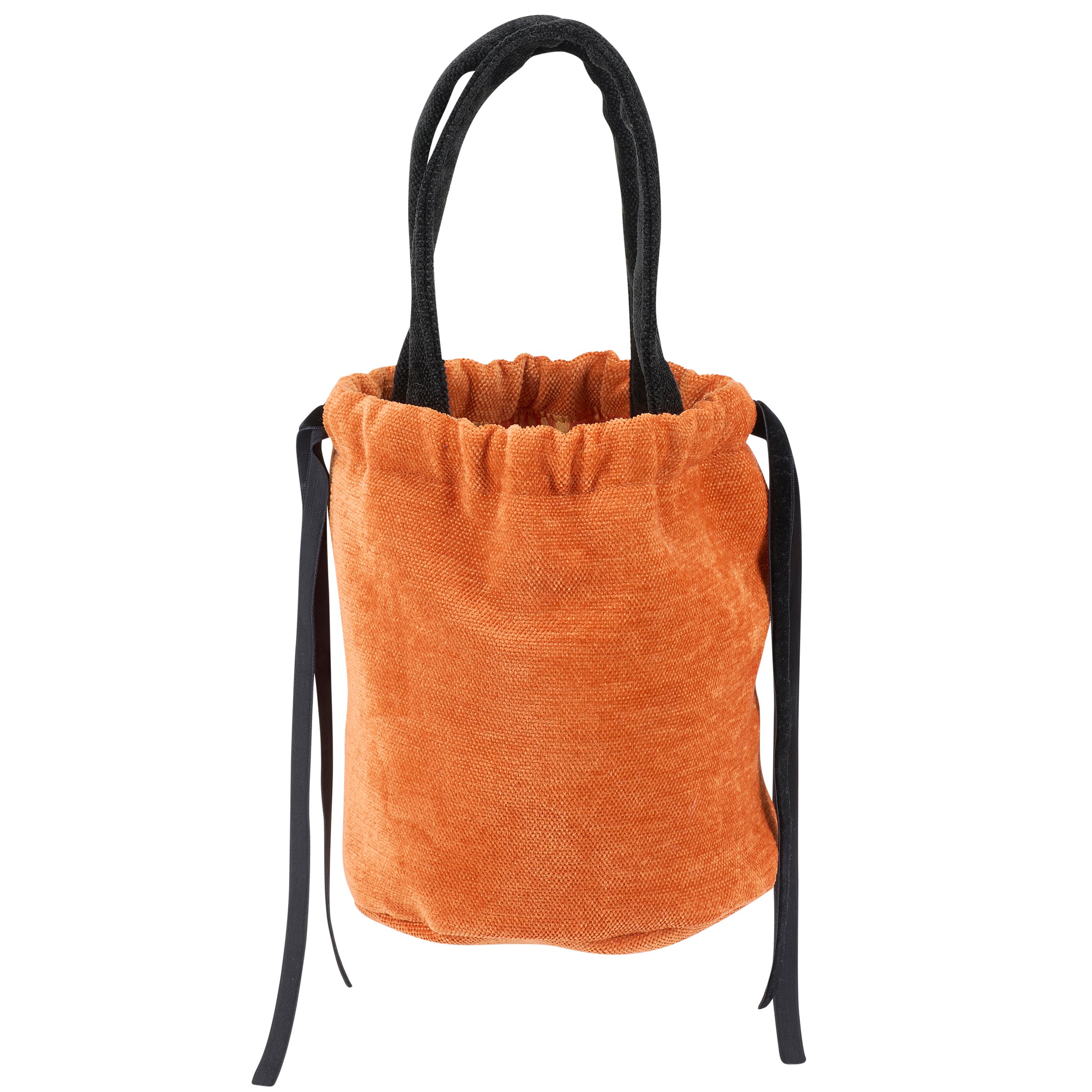 A reusable treat bag from our Halloween Collection featuring an orange woven bag with an embroidered patch on the front displaying a cute skeleton jack o'lantern character with bat wings. Our Jack Bat treat bag includes fabric handles and sinch tie to secure items inside. A whimsical Halloween accessory perfect for trick or treating as well as for reusable gift wrapping.