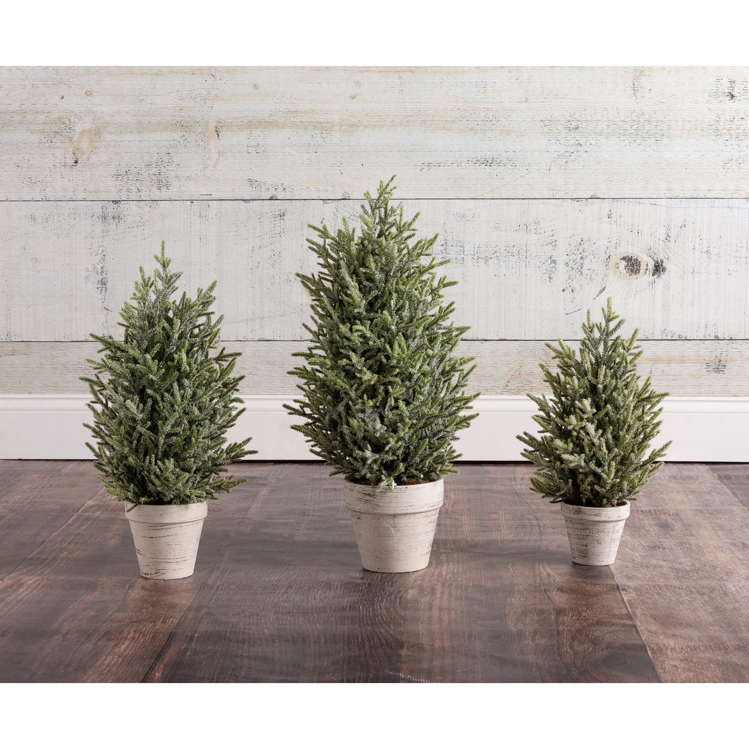 A standing bristle tree featuring glitter accents for an icy effect. 20" tall with a flower pot base.