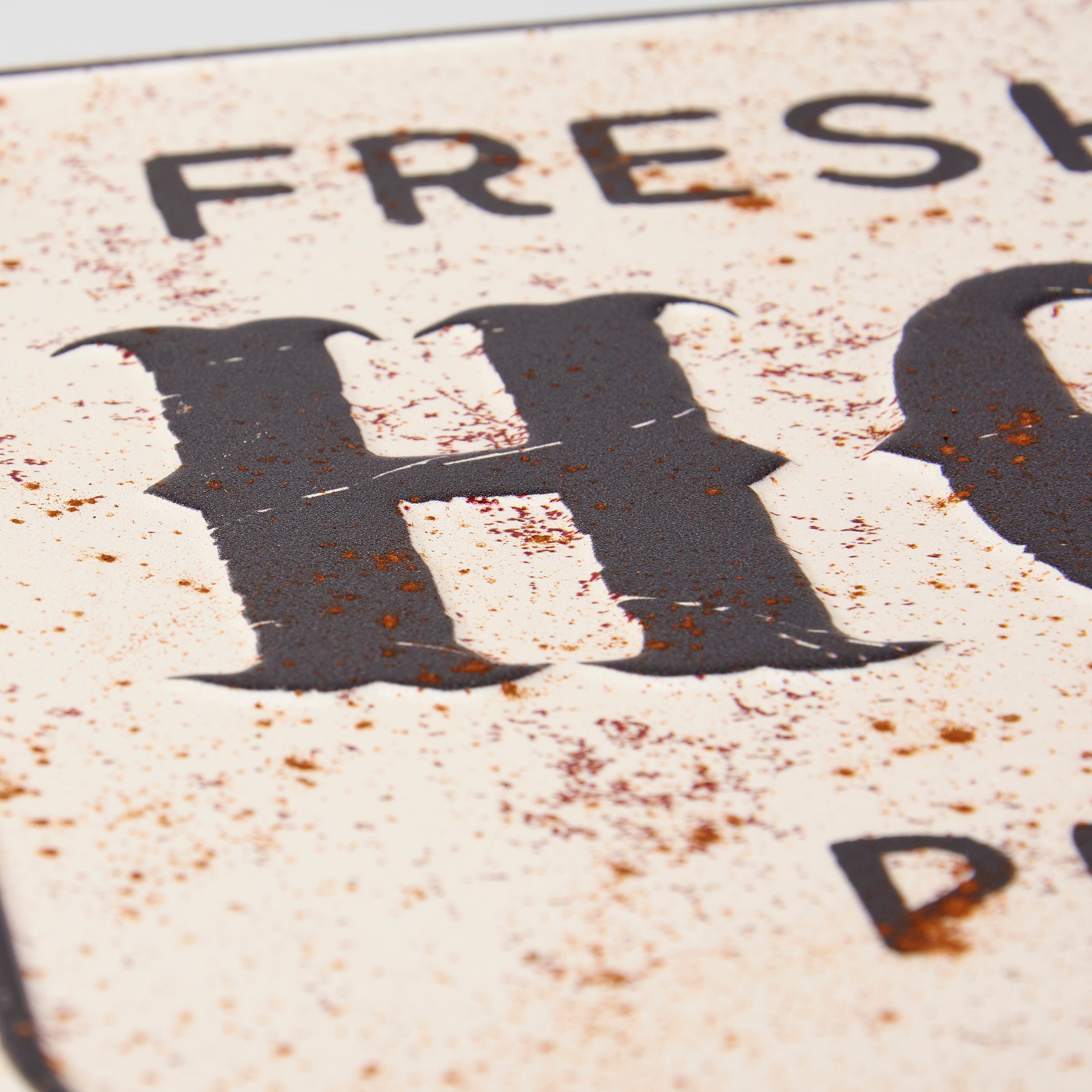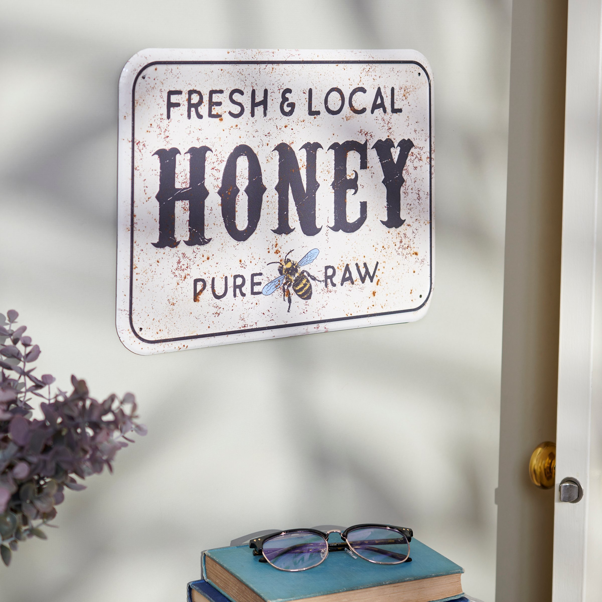 A metal wall décor piece from our Homestead Collection displaying a rustic farm inspired sentiment that reads "Fresh & Local Honey." Design features embossed details as well as a rust finish for an aged appearance. Our Honey wall décor is easy to hang against wall using the included nails and pre-drilled holes in each corner. A farm-themed home accent perfect for everyday display.