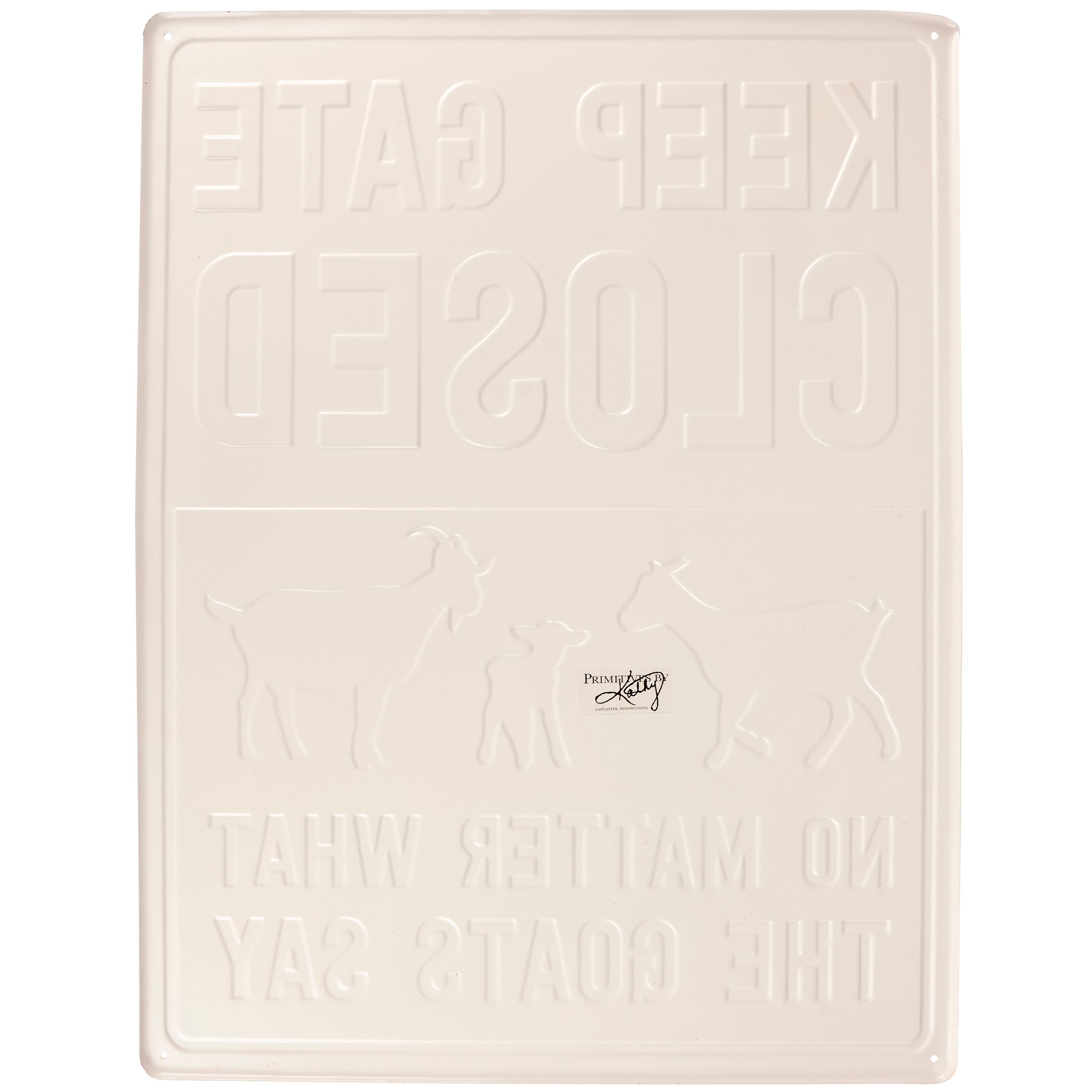 A metal wall décor piece from our Homestead Collection displaying goat silhouettes with a fun farm inspired sentiment that reads "Keep Gate Closed - No Matter What The Goats Say." Farm sign design features embossed details and a rust finish for an aged appearance. Our Keep Gate Closed metal wall décor is easy to hang against wall using the included mounting hardware and pre-drilled holes in each corner. A rustic farm-themed home accent perfect for everyday display.
