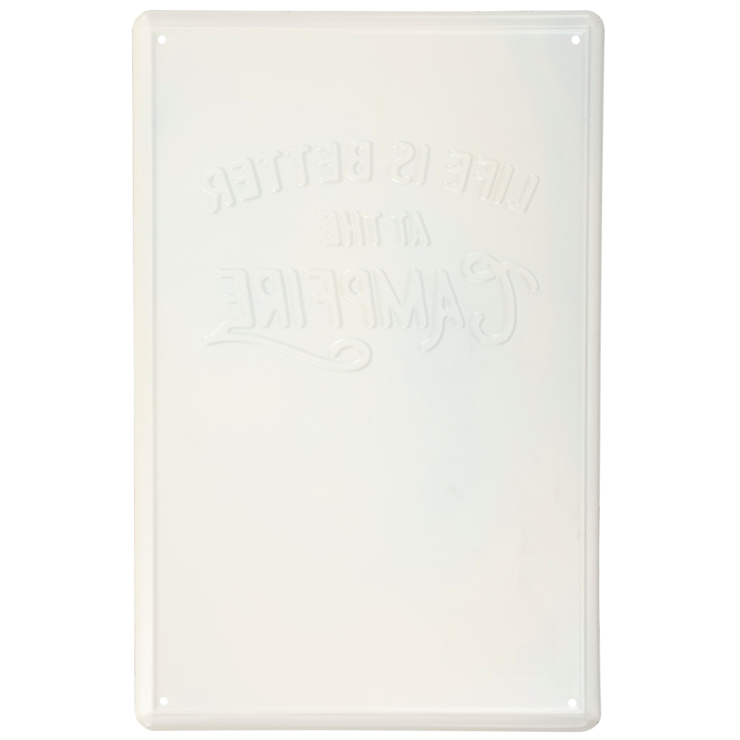 A metal wall décor piece from our Lake & Cabin Collection displaying a cozy campfire scene with a camping inspired sentiment that reads "Life Is Better At The Campfire." Camp sign design features embossed details and a rust finish for an aged appearance. Our Better At The Campfire metal wall décor is easy to hang against wall using the included mounting hardware and pre-drilled holes in each corner. A rustic camping themed home accent that coordinates well with cabin decor.