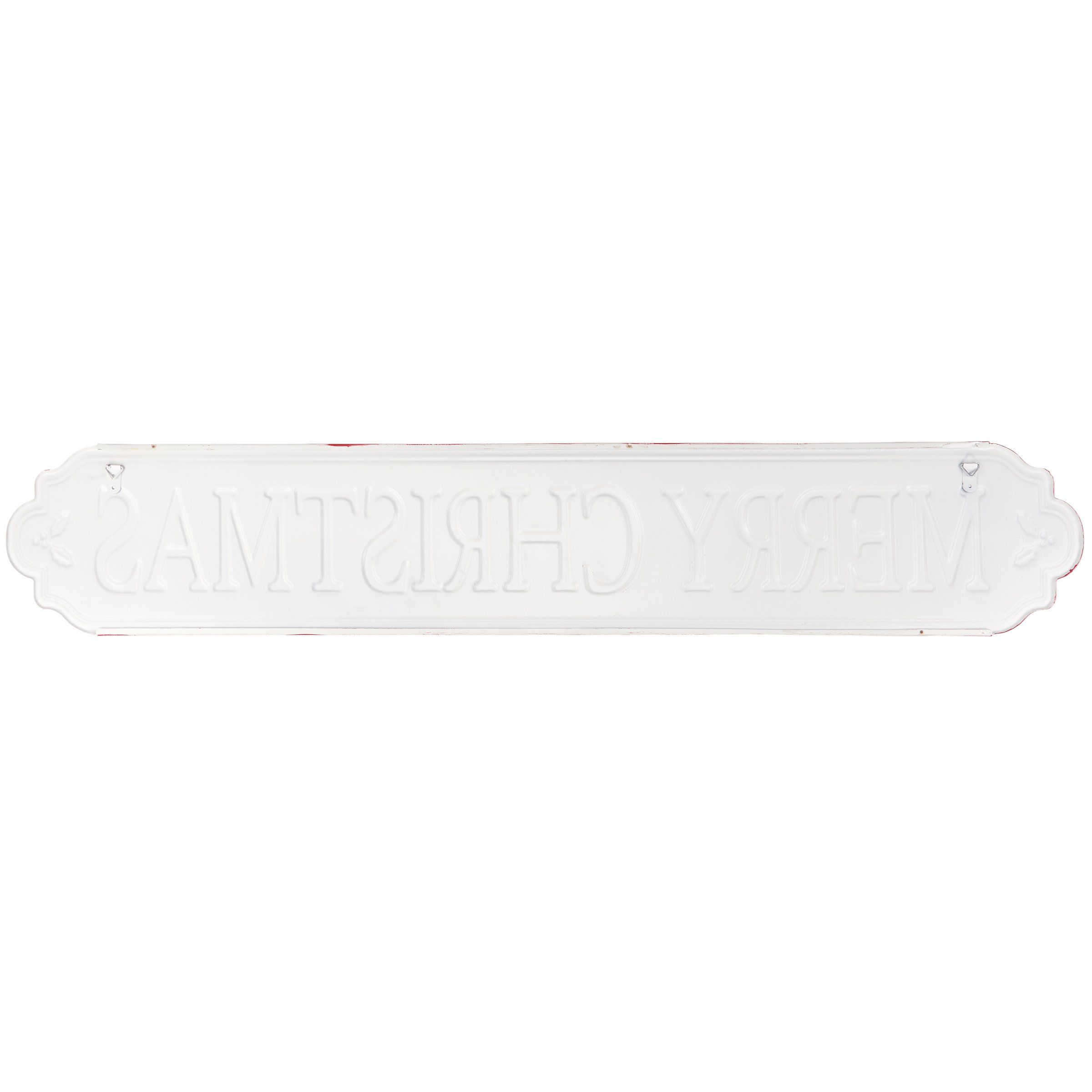 A metal wall décor piece from our Christmas Collection displaying a rustic inspired holiday design with seasonal sentiment that reads "Merry Christmas" between holly berries. Design features embossed details with metallic accents, as well as a rust finish for an aged appearance. Our Merry Christmas metal wall sign is easy to hang against wall using the included hangers on the back. A rustic Christmas home accent perfect for seasonal display.