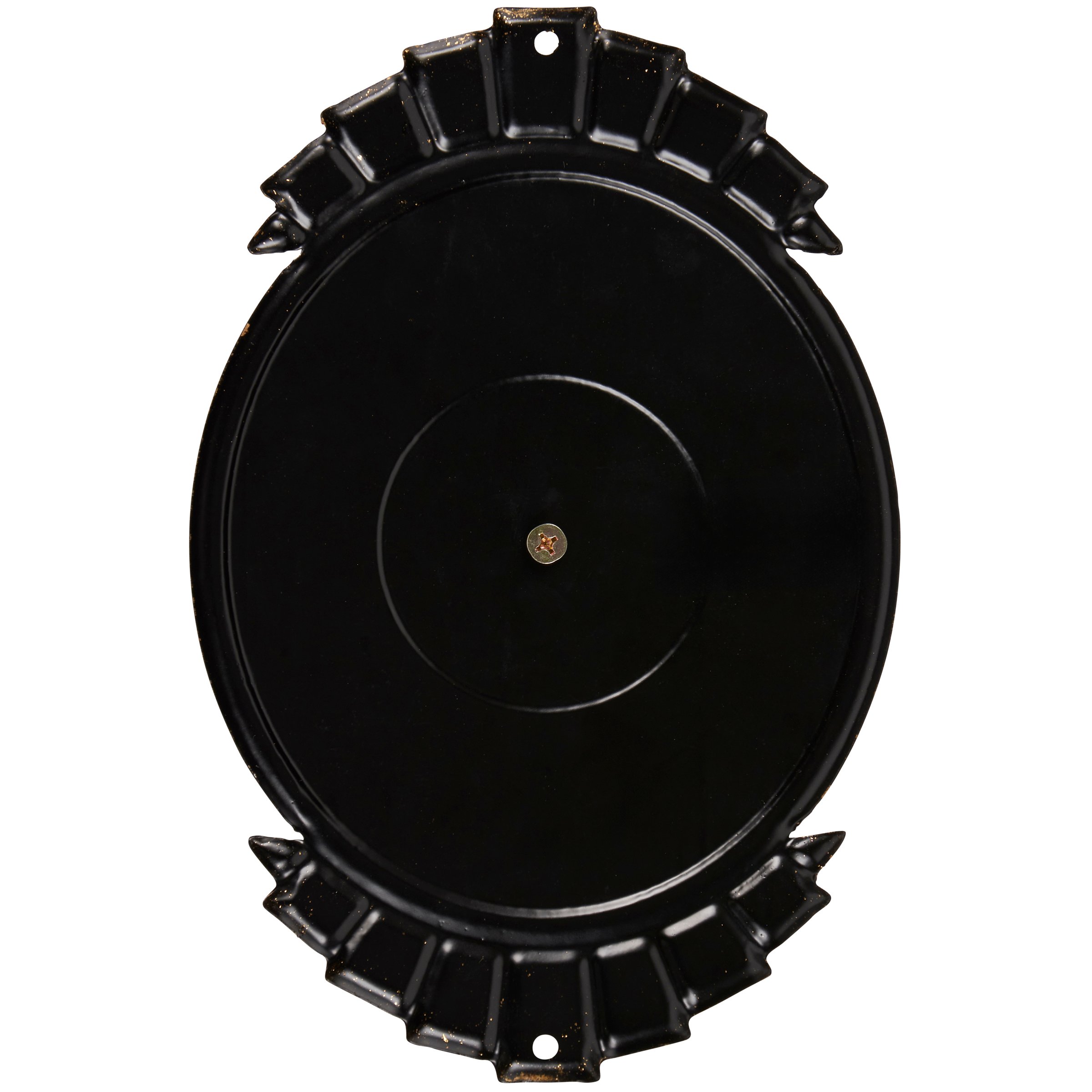 A metal wall décor piece from our Art Deco Collection displaying an art deco inspired design with a functional bell in the middle of a sentiment that reads "Ring For Drinks." Metal sign features embossed details and metallic gold accents. Our Ring For Drinks metal wall décor is easy to hang for display via pre-drilled holes at the top and bottom. A vintage alcohol-themed home accent perfect for a home bar.