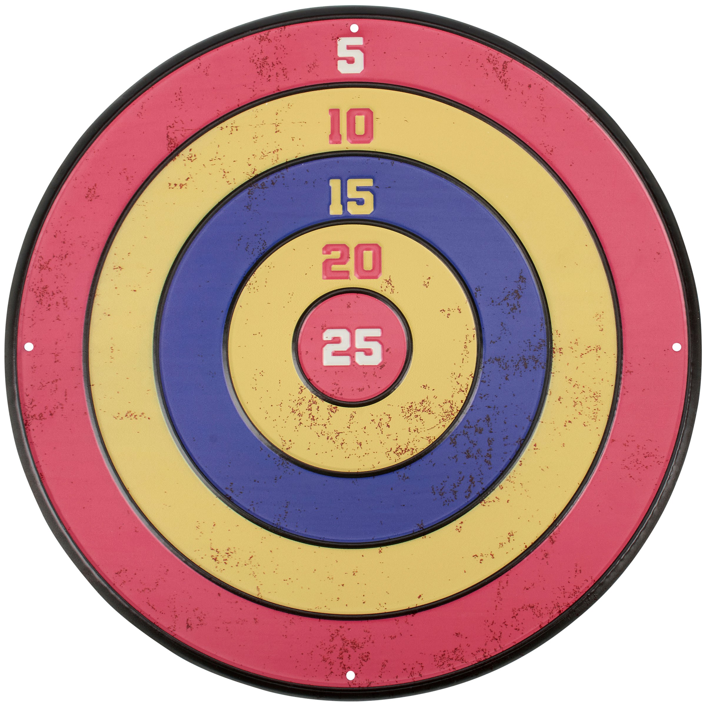 A metal wall décor piece from our Lake & Cabin Collection featuring an archery target design inspired by vintage summer camp style. Archery target sign design features embossed details and a rust finish for an aged appearance. Our Archery Target metal wall décor is easy to hang against wall using the included mounting hardware and pre-drilled holes on each side. A vintage camping themed home accent that coordinates well with cabin decor.
