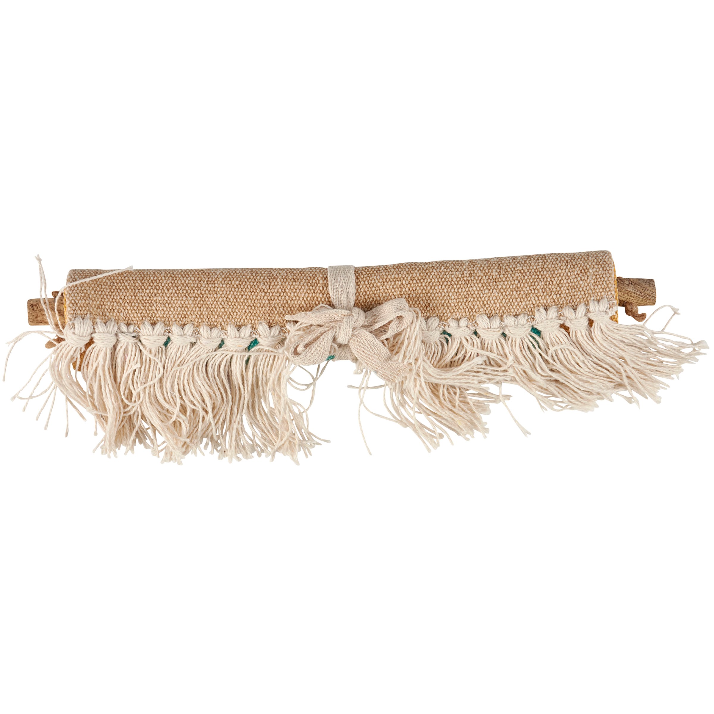 A cotton wall hanging from our Western Collection displaying a woven western pattern in a southwest color palette. Wall hanging features coordinating tassels at the bottom for added interest. Our Western wall hanging is easy to display via the attached jute hanger. A western-themed home accent perfect for everyday display.