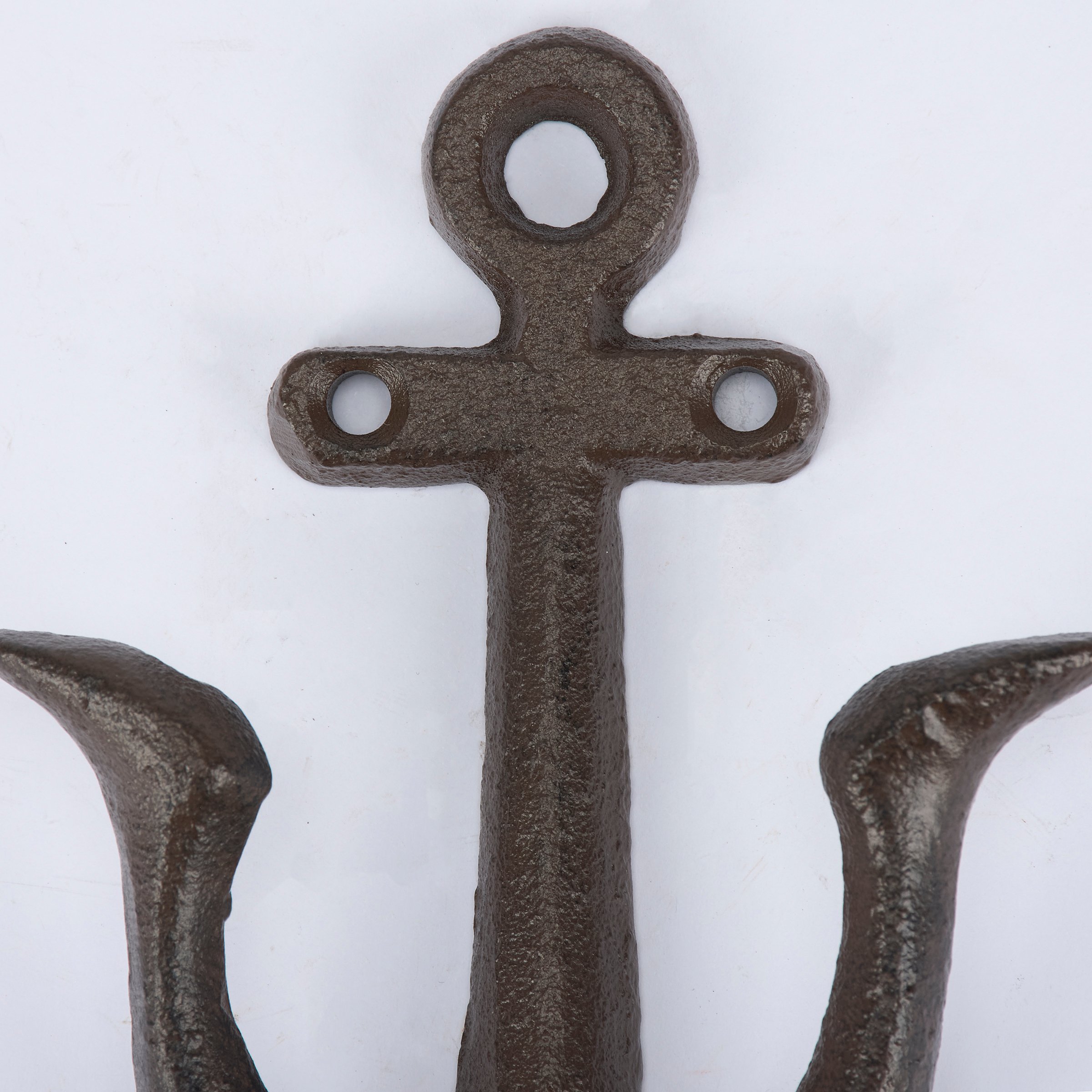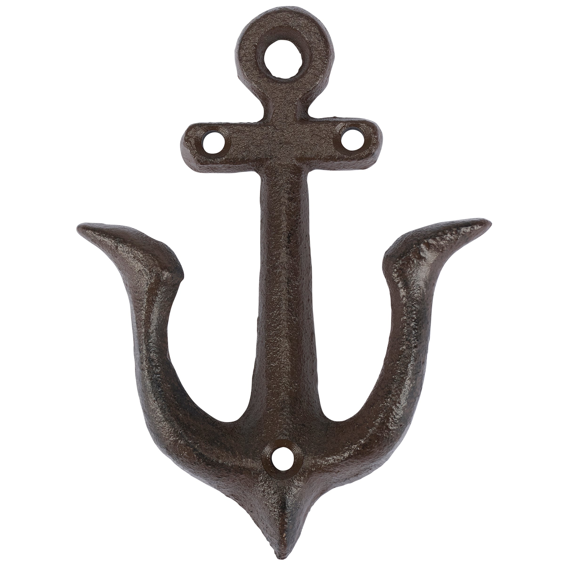 A metal wall hook from our Beach Collection displaying a rustic design inspired by beach décor. This sturdy wall hook features a sculpted anchor design with antique finish and angled anchor arms to create hooks for hanging accessories or clothing on the wall. Our Anchor wall hook is easy to hang for display and use via predrilled holes. A rustic home accent that adds functional style to any space.