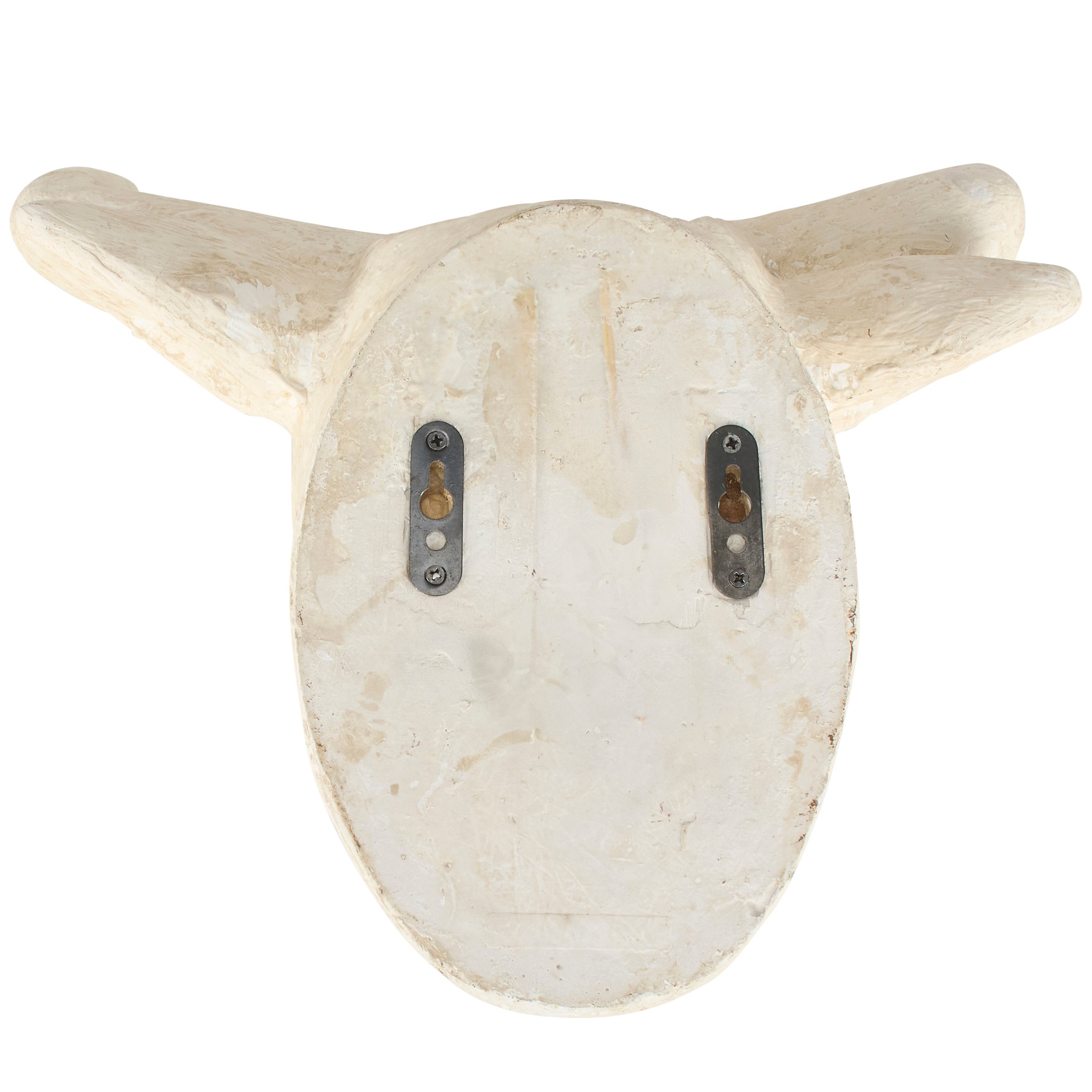 A cement wall planter from our Cottage Charm Collection displaying a sculpted steer head design with cream finish and distressed details for aged appearance. Steer planter features a flat back to hang against wall and a hole on the top to place greenery or décor. Greenery pictured not included. Our Steer wall planter is ready to hang for display via metal keyhole slots on the back. A farm themed plant accessory perfect for adding vintage style to plant displays.