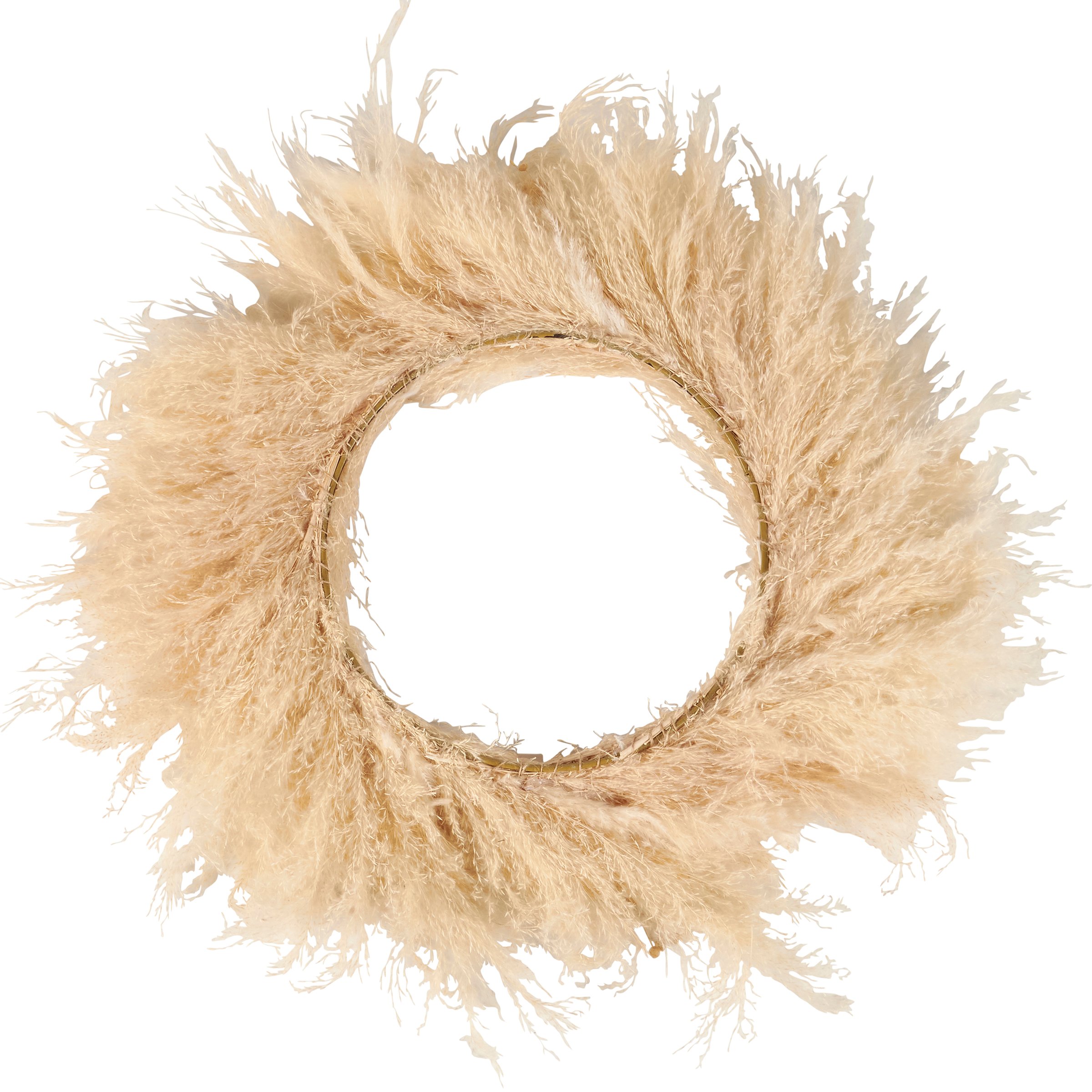 A pampas grass wreath from our Fall & Harvest Collection that adds a natural touch to seasonal home décor. Our Pampas Grass wreath coordinates well with almost any style, making it a perfect option for easily adding botanical accents to every space. Decorate with pampas grass for a natural fall style in seasonal displays and table settings. Easily hang on a door with our Galvanized Wreath Hanger. Displays perfectly on its own or enhance our pampas grass wreath using one of our wreath inserts for a personal touch. A seasonal home accent with a variety of display options.